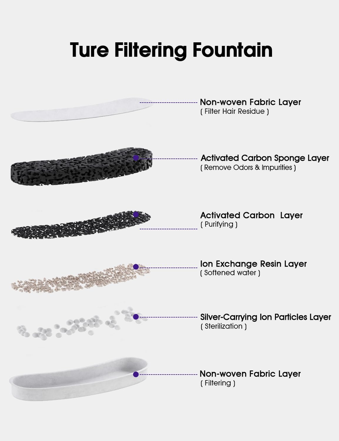 - Usage Method-please rinse the carbon filter in water for 5 minutes thoroughly before use, then install the cat fountain filter into the cat drinking fountain.
