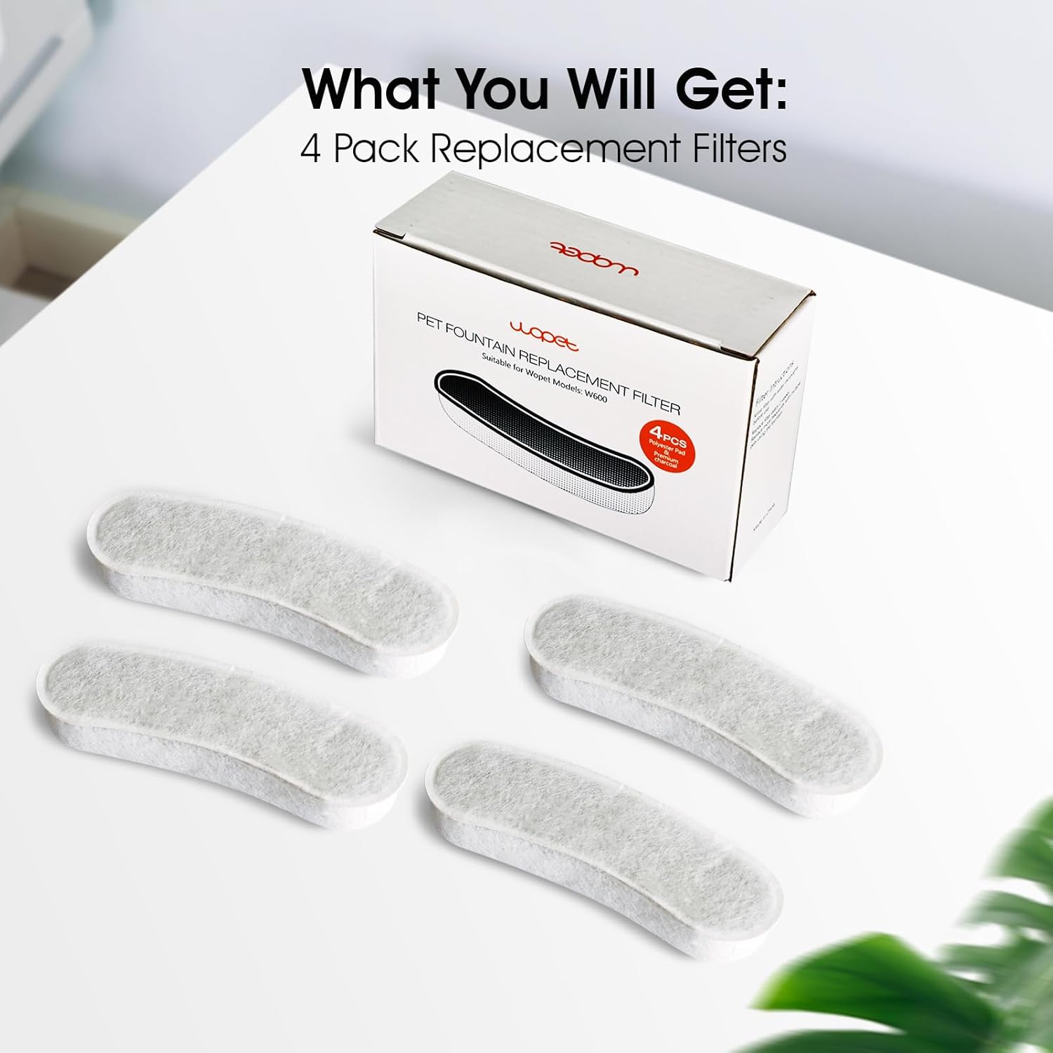 Dog Water Fountains by WOPET, 4 Pcs Pet Water Fountain Filters for W600 Dog Fountain, Large Dog Fountain Filter Replacement Cats,Pets