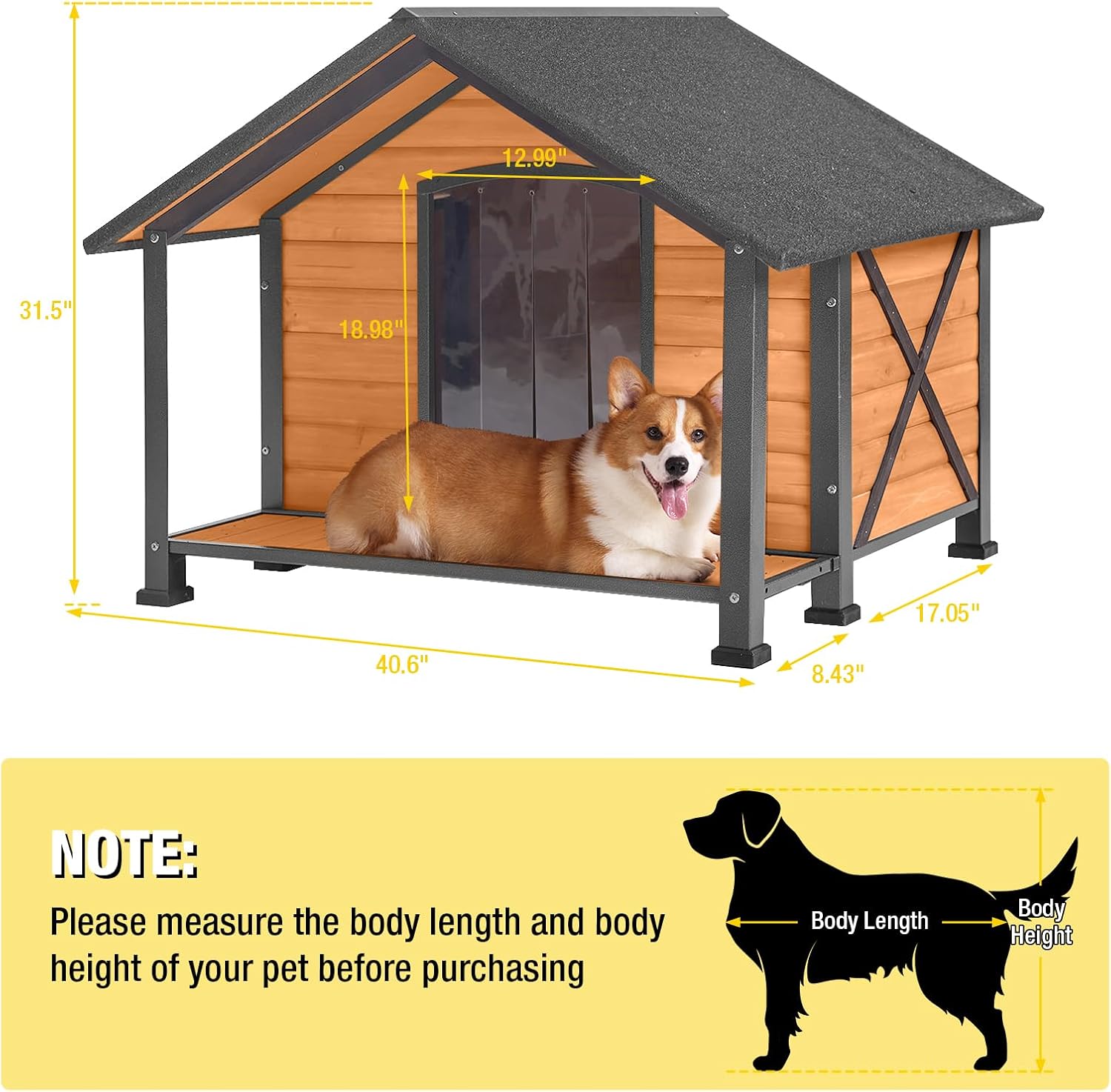 - 【Large Resting Porch】Dog kennel with a large porch provides your dog with a sense of space and security. It's a perfect spot for your pet to relax, observe their surroundings, and enjoy a breath of fresh air without being exposed to the elements.