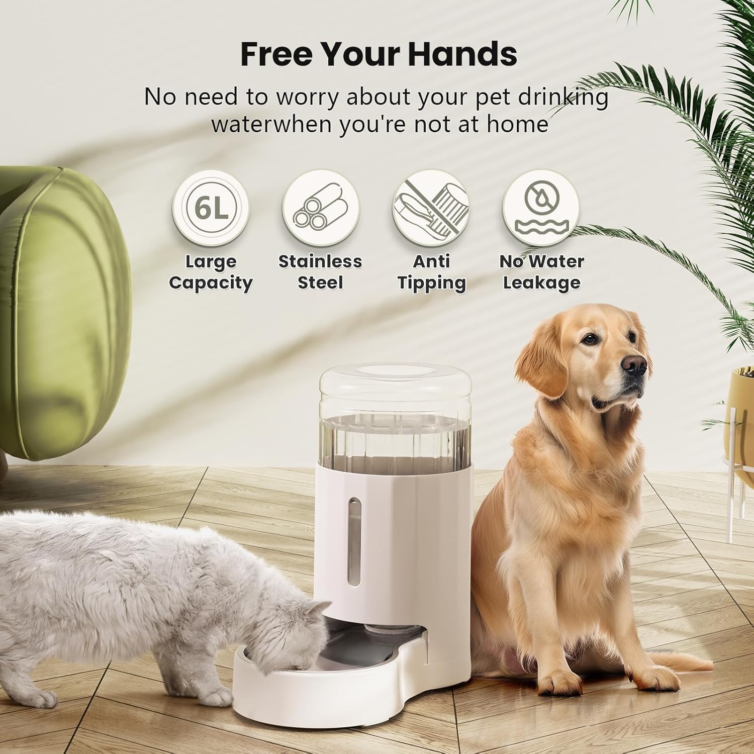 - [Automatic water replenishment] This pet water separator uses gravity to replenish water automatically to to help the owners free their hands. The non plug-in design makes it more convenient to use. Water volume can be monitored through visual windows.