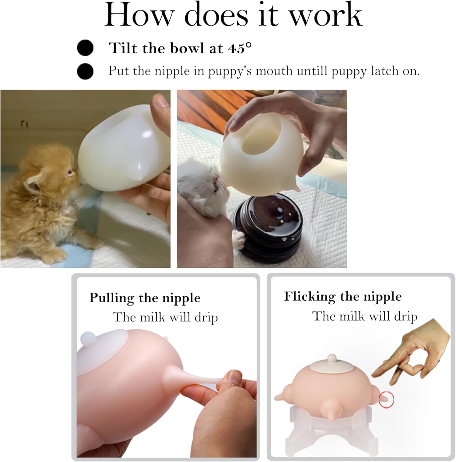 - Please note: This product is a new breastfeeding option. Please try several times according to the instructions when the pet baby is hungry (or try several times within a few days, and you will get satisfactory results in the end). Generally, they are willing to accept it. However, as each animal has different personalities and preferences, occasionally some pet babies may not like this product or accept artificial breastfeeding. Please switch to other feeding methods.