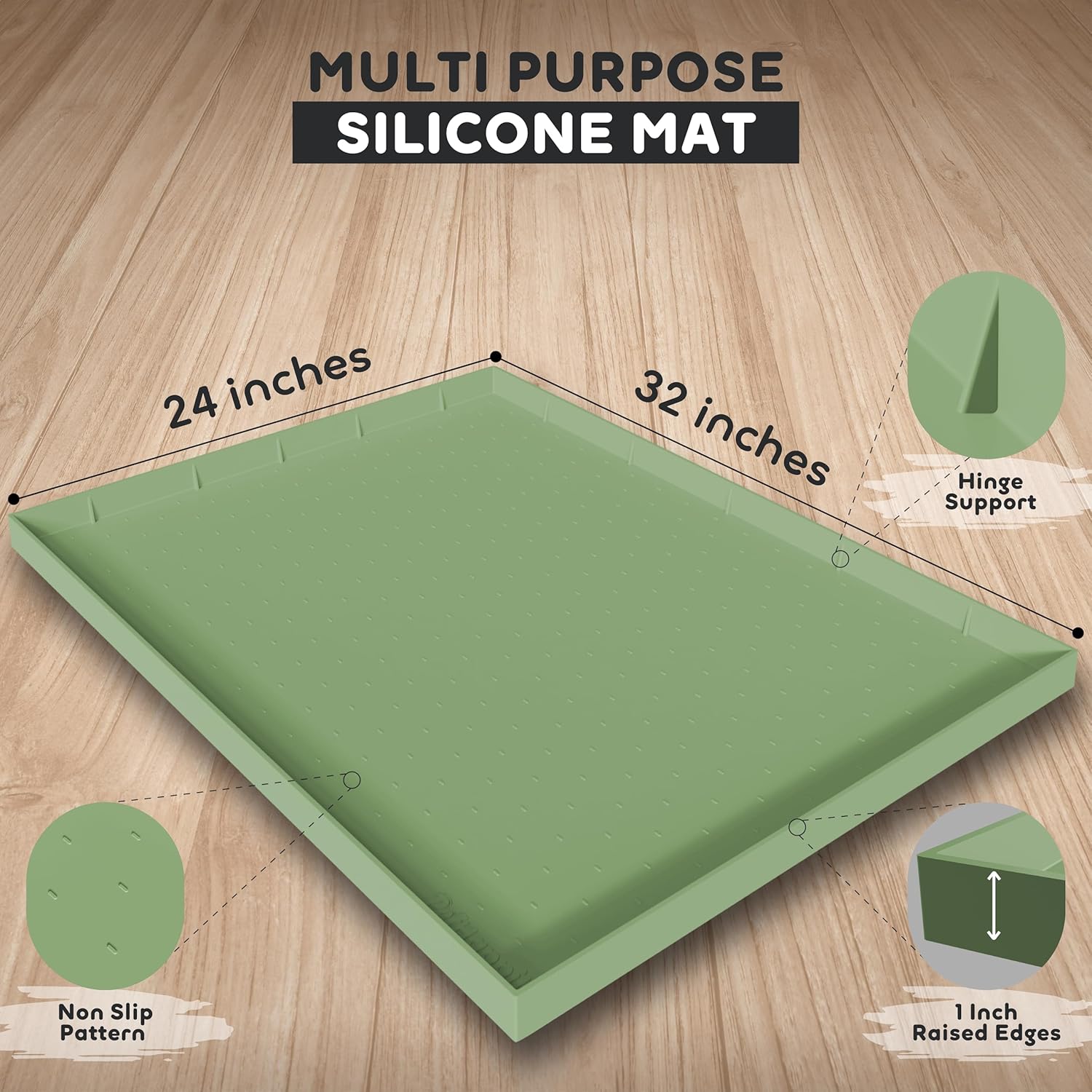 32x24x1” XL Dog Food Mat - All Purpose Under Sink Liner, Washer and Dryer Covers for The Top, Silicone Griddle Mat for Blackstone - Raised Edges Dog Mat for Food and Water Prevent Spill, Waterproof