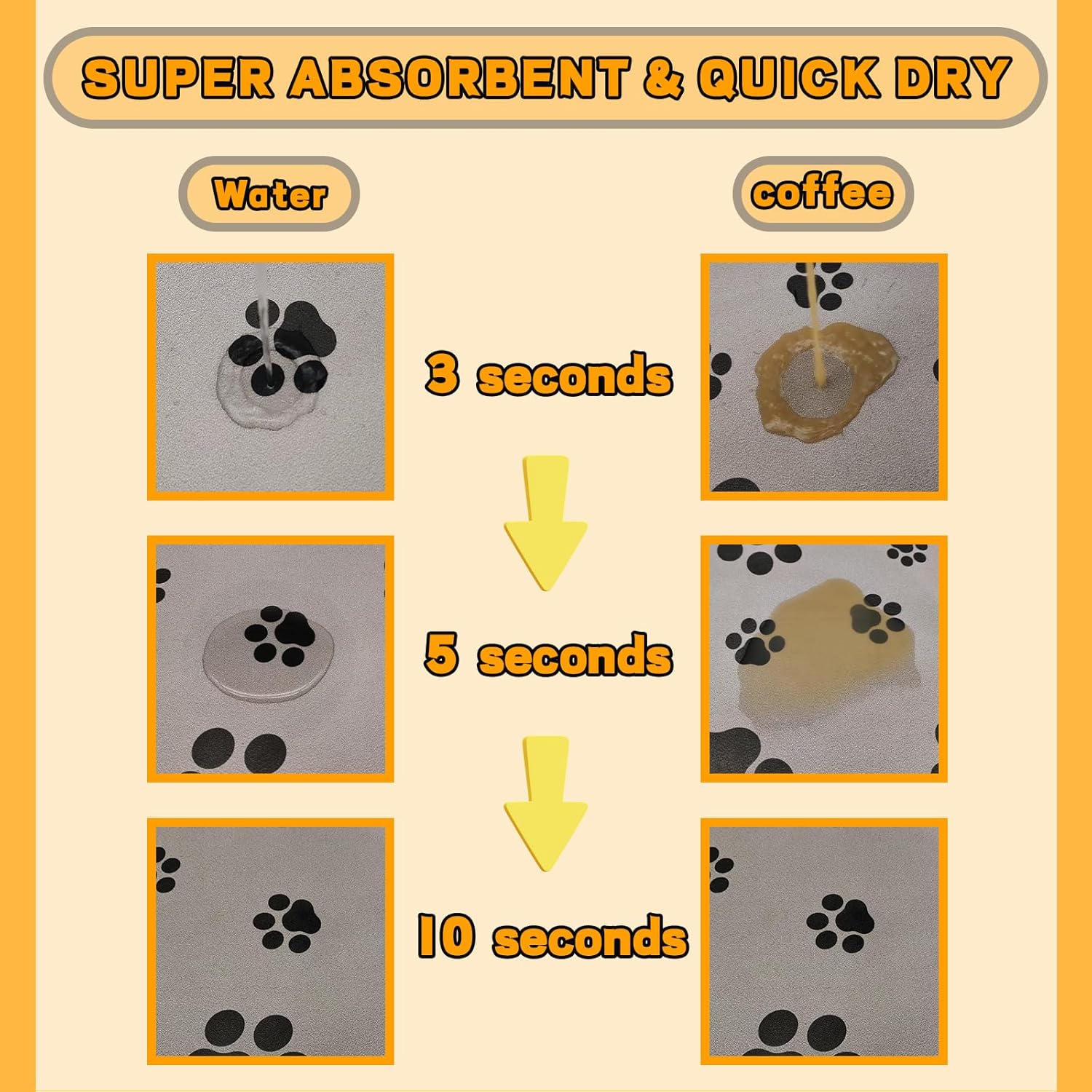 - HIGH ABSORPTIVENESS: The pet feeding mat is made of diatomaceous earth, which ensures fast water absorption and keeps the mat surface and floor dry and tidy. The super absorbency makes the feeding mat dry quickly, so even pets who love to drink water won't get their paws and floors wet