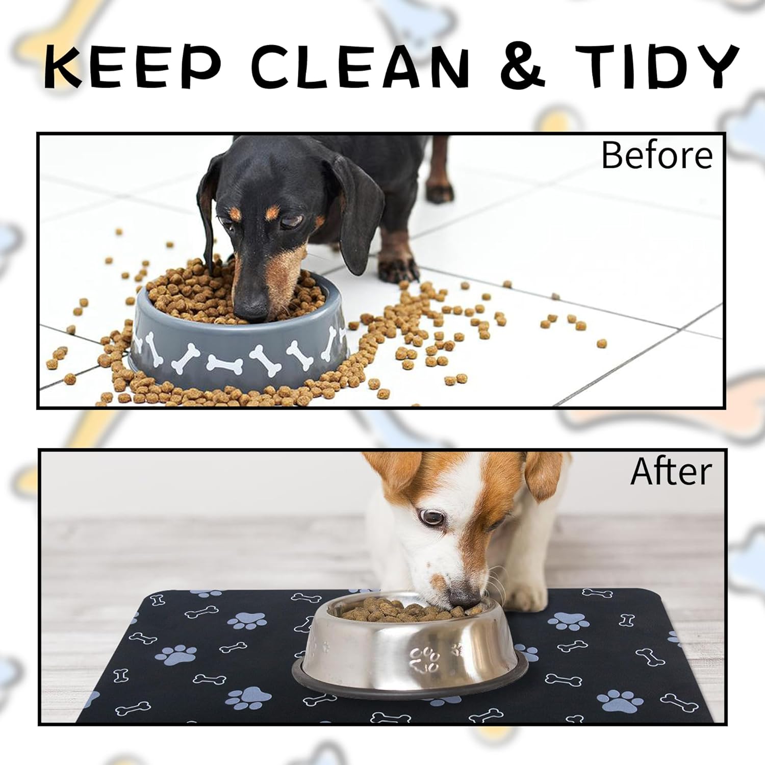 - <b>【Anti-Slip】</b>The non-slip rubber backing keeps the dog & cat feeding mat in place no matter how your pet pushes on it. The waterproof rubber bottom prevents water from penetrating the floor. Dog bowl mats for food and water will not cause the floor to be corroded and reduce the abrasion to the floor.