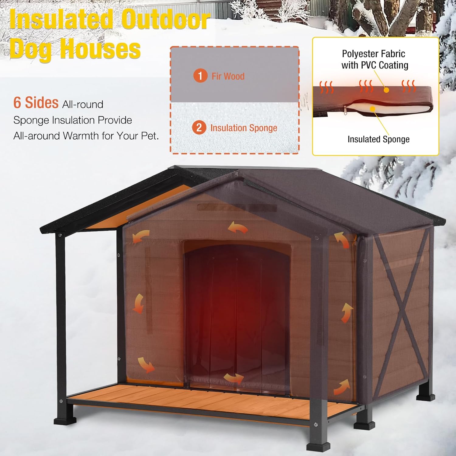 - 100% Insulated Dog House- outdoor dog house with 6 sides all-round thermal liner to lock the comfortable temperature. Insulation on all walls, roof and floor protects puppy from any extreme outdoor conditions.