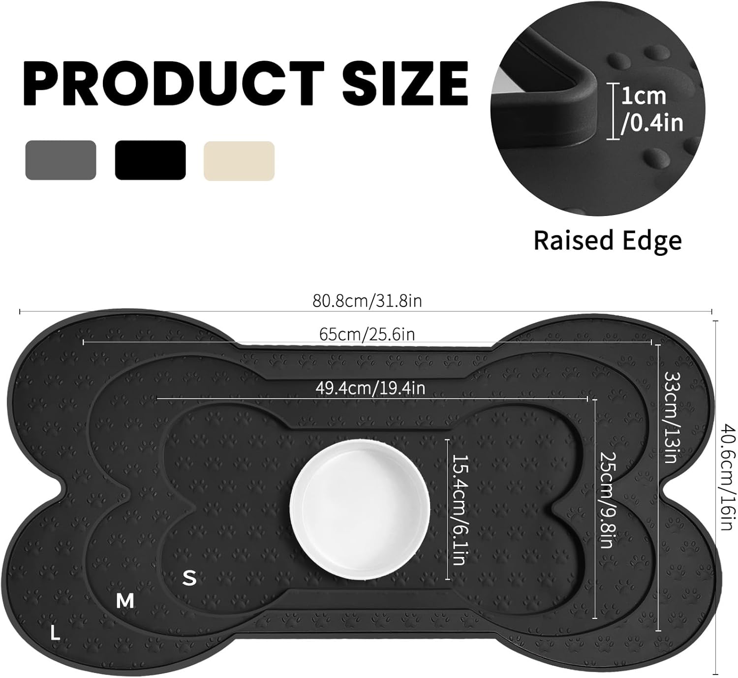 - Raised Edge - The high edge of this feeder mat keeps food and water within the tray and prevents spillage onto a clean floor. Keep your living space tidy and clean, say goodbye to messy floors, you just need to clean the dog bowl mat regularly.