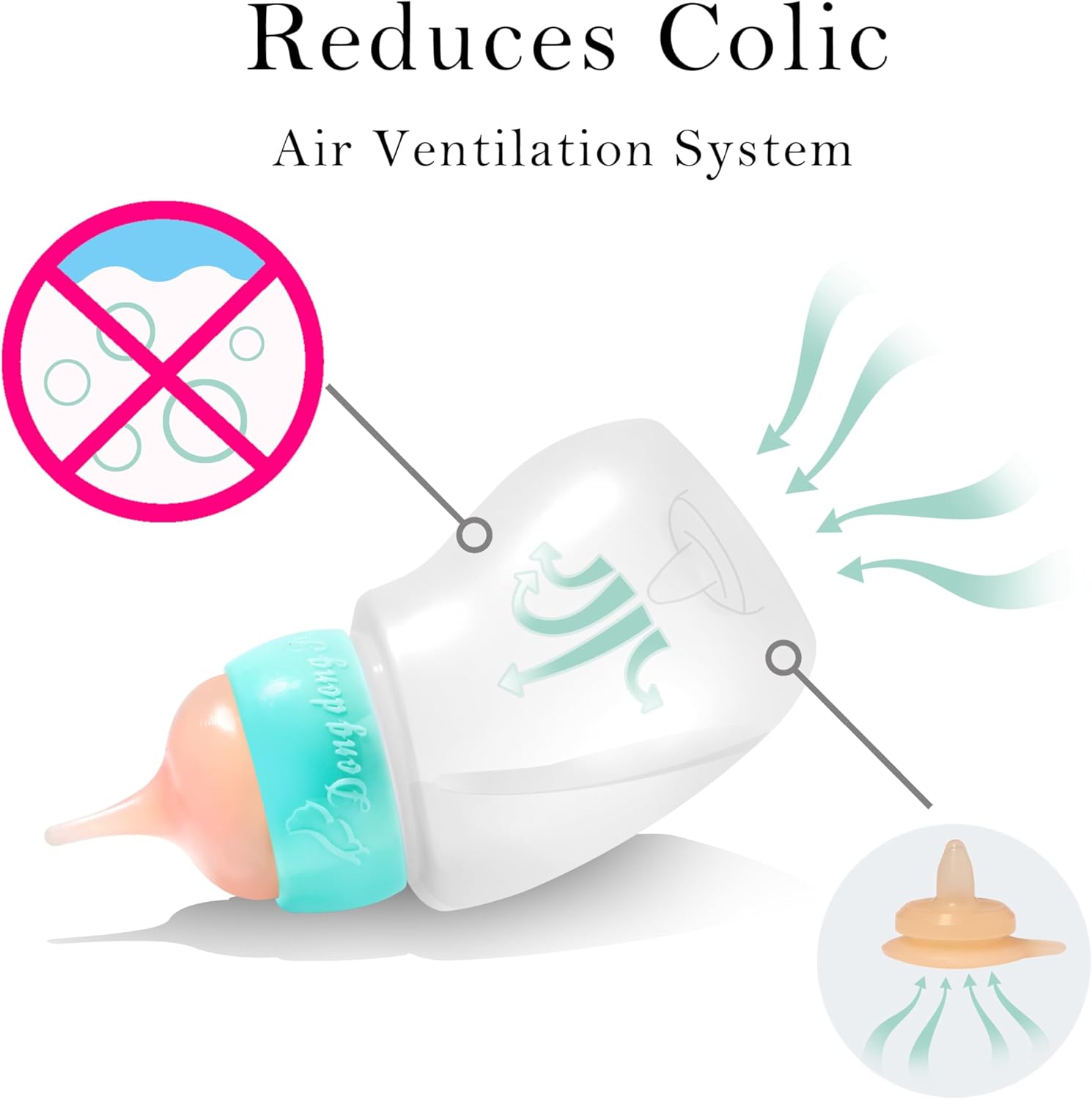 - Bottle ventilation system similar to human babies: no need for ventilation when drinking milk, reducing the probability of choking on milk. A safety protection like giving a human baby