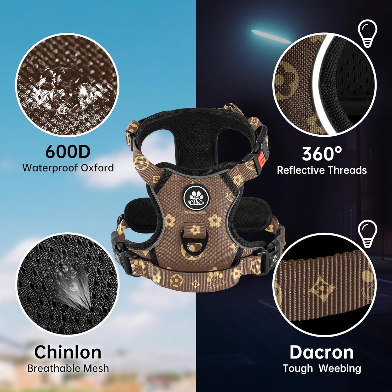 - 【EASY ADJUSTMENT】This no choke dog harness design with 4 fully adjustable straps (2 shoulder and 2 chest straps) which can be adjusted to the most fitting size, prevents the dog from breaking free while maintaining maximum comfort