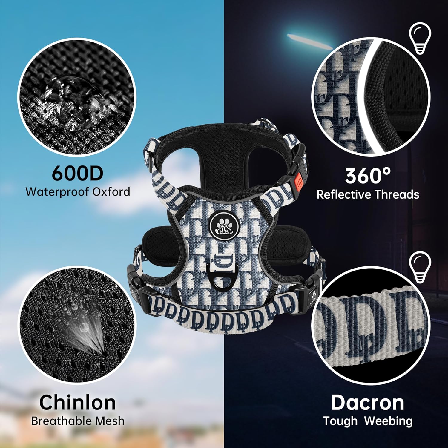 - 【EASY ADJUSTMENT】This no choke dog harness design with 4 fully adjustable straps (2 shoulder and 2 chest straps) which can be adjusted to the most fitting size, prevents the dog from breaking free while maintaining maximum comfort