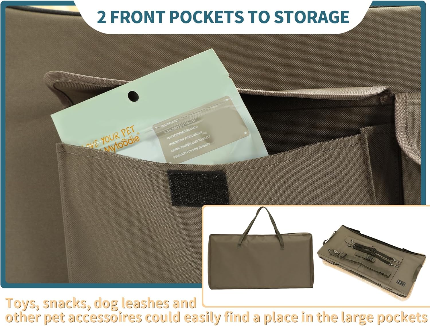 - Easy to use: Quick to install and uninstall in car's backseat, sturdy construction ensures the whole seat is in shape, collapsible design makes dog seat easy for storage if not used. There are storage bags that can hold pets' daily necessities on the go. It also has an adjustable buckle design, it can be quickly installed on most standard car seats, suitable for a variety of car types.