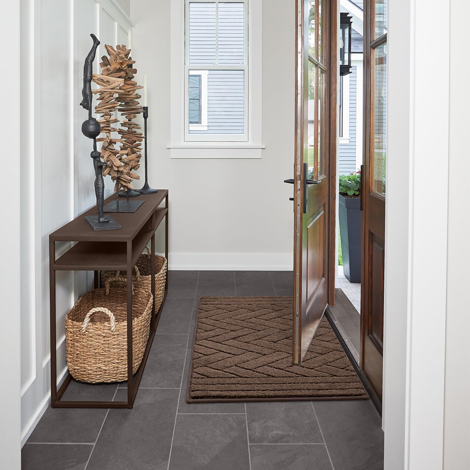- Absorb Moisture and Dirt:Tindbea indoor dog mat for muddy paws is crafted to efficiently remove dirt and swiftly absorb moisture. With our doormat, your shoes will be instantly free of any water, dust, grit, muck, sand, sleet, grass, slush, rain, or snow upon entering the house. It's an excellent choice for use as an entryway door mat, a delicate door mat, or a dirt-trapping mat.