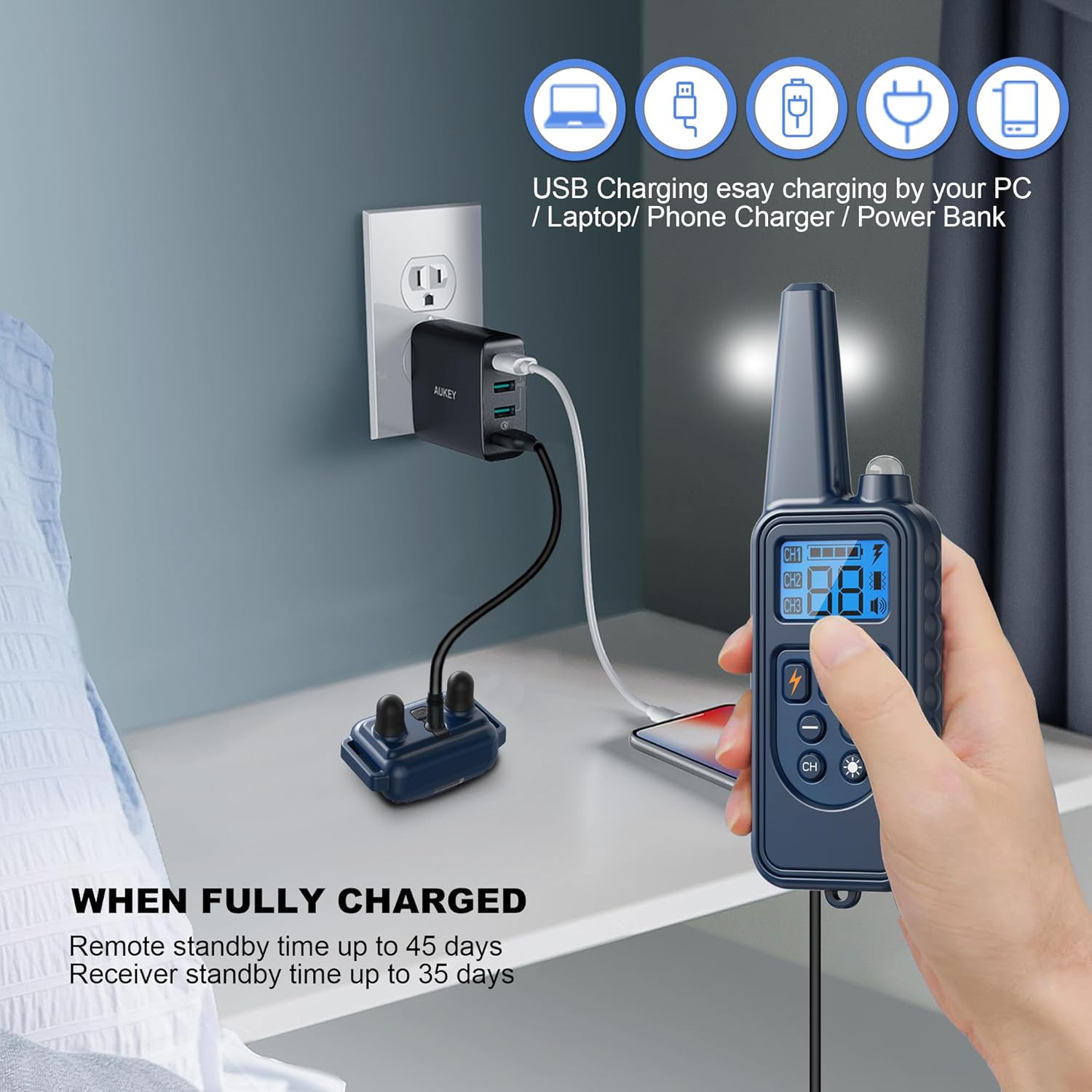 - Weatherproof Design: With an IPX7 waterproof rating, Heaflex dog training collar ensures reliability in any weather. Whether your dog is swimming, showering, or playing in the rain, the receiver stays functional. Note: the remote is not waterproof