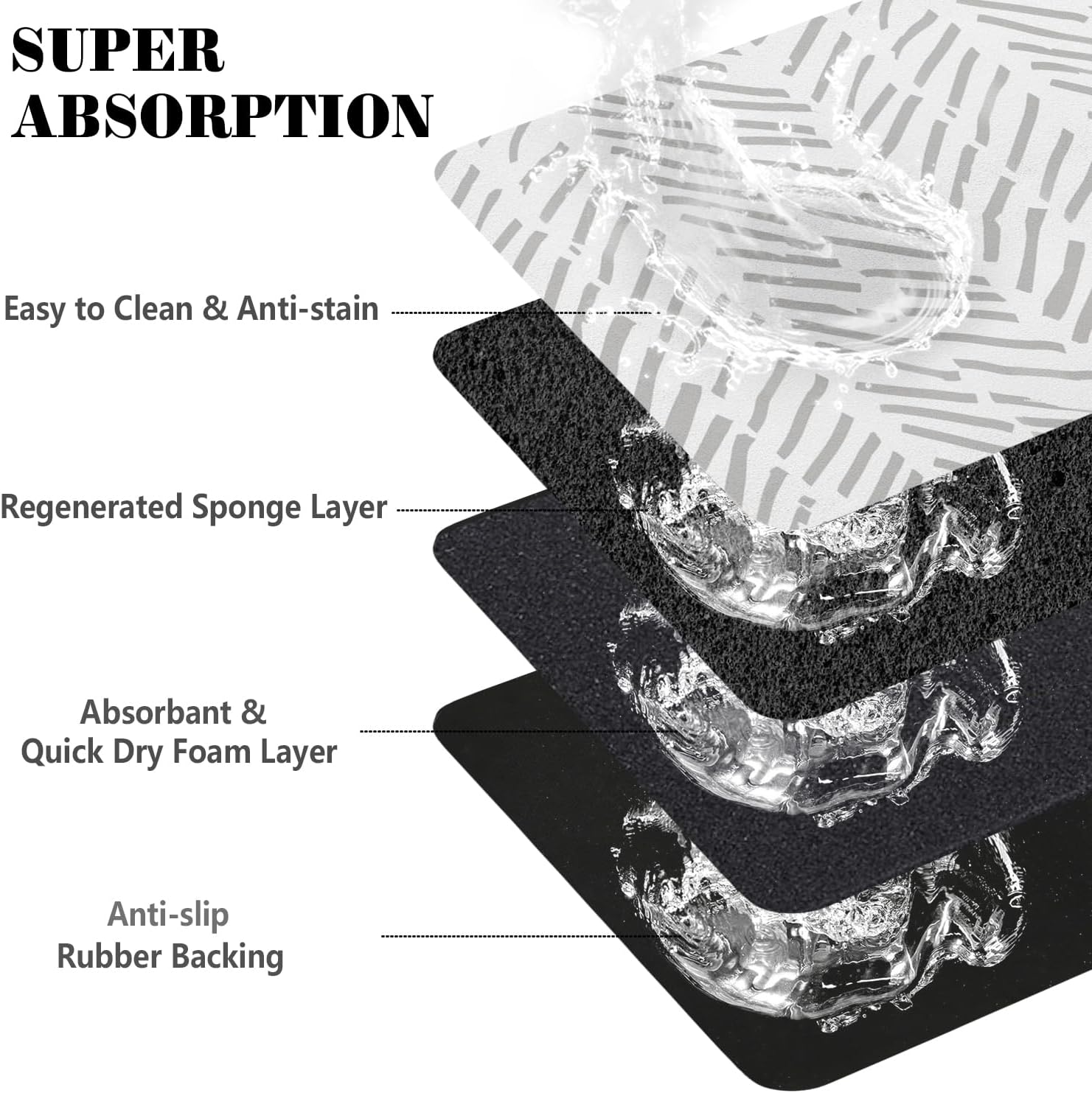 - Non-Slip Rubber Backing: Rubber backing makes sure the pet mats for food and water stay in place firmly. The durable water bowl mat is tear-resistant, which prevent your pets from ingesting it accidentally.