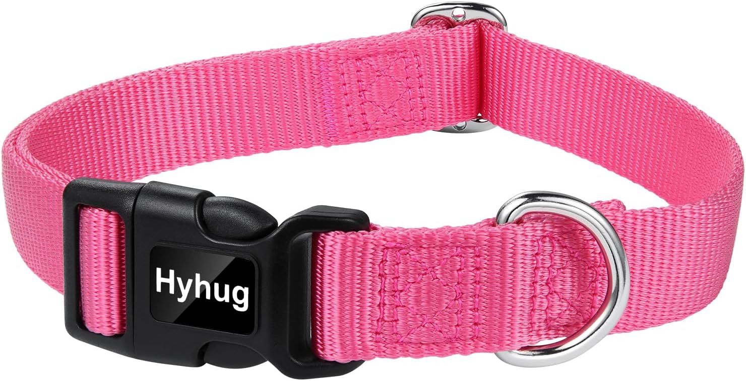 Hyhug Dog Collar with Quick Release Buckle, Nylon Adjustable Durable Cute Pet Collars for Medium Dogs, Boy and Girl(Candy Pink, Medium)