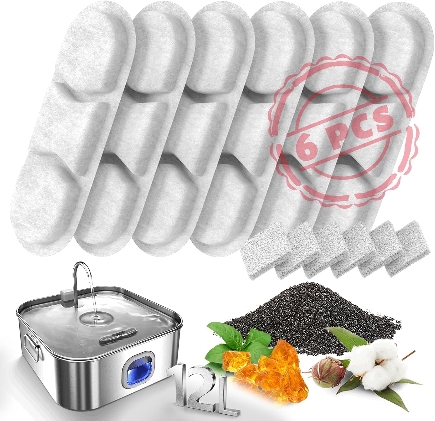 - Specification: The sponge activated carbon filter is rectangular. It is 5 in L x 1.8 in W x 0.4 in H, and it's 6 pet drinking fountain filters & 6 pump sponges in a box, it will serve you well for at least 3 months.