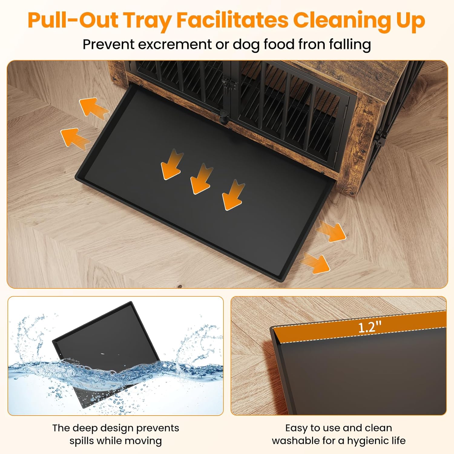 - 【Versatile Tray Usage】Put the tray under the bottom mesh to catch crumbs, fur, and dirt, keeping your dog's place clean without dirtying your floor, maintaining a tidy living space for your pet, or place the tray above the mesh to offer your dog a flat, comfortable surface—it's up to you