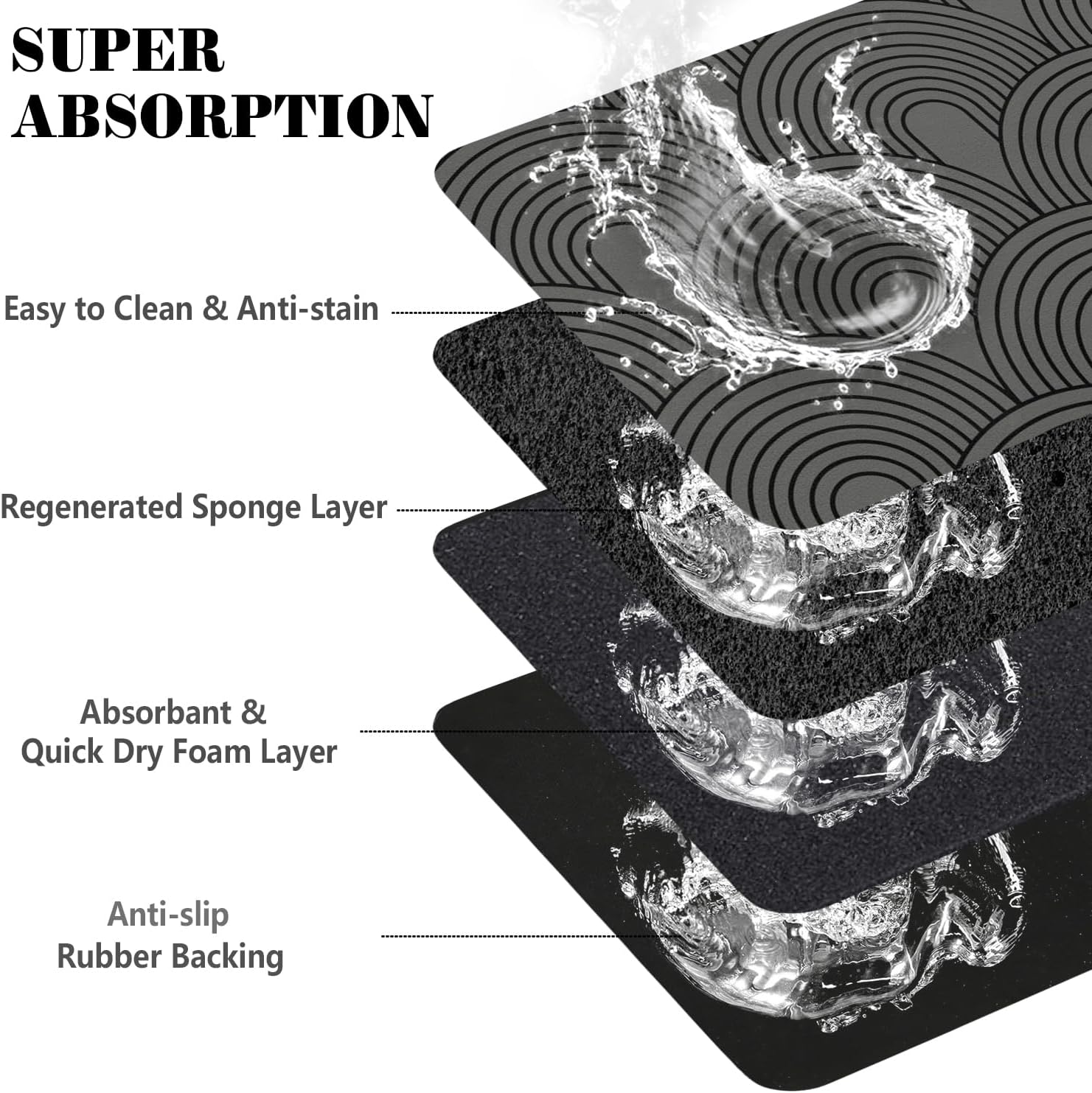 - Non-Slip Rubber Backing: Rubber backing makes sure the pet mats for food and water stay in place firmly. The durable water bowl mat is tear-resistant, which prevent your pets from ingesting it accidentally.