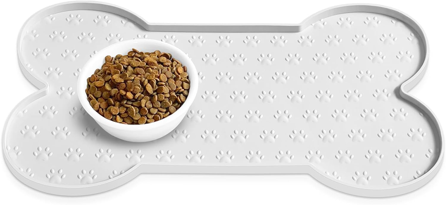 - Health Silicone Material - This pet bowl mat is non-toxic, and non-allergenic, protecting the health and safety of your pet's feeding. 25.6" x 13" holds two regular big bowls, perfect for medium to large-sized dogs and cats to enjoy a delicious meal tray.
