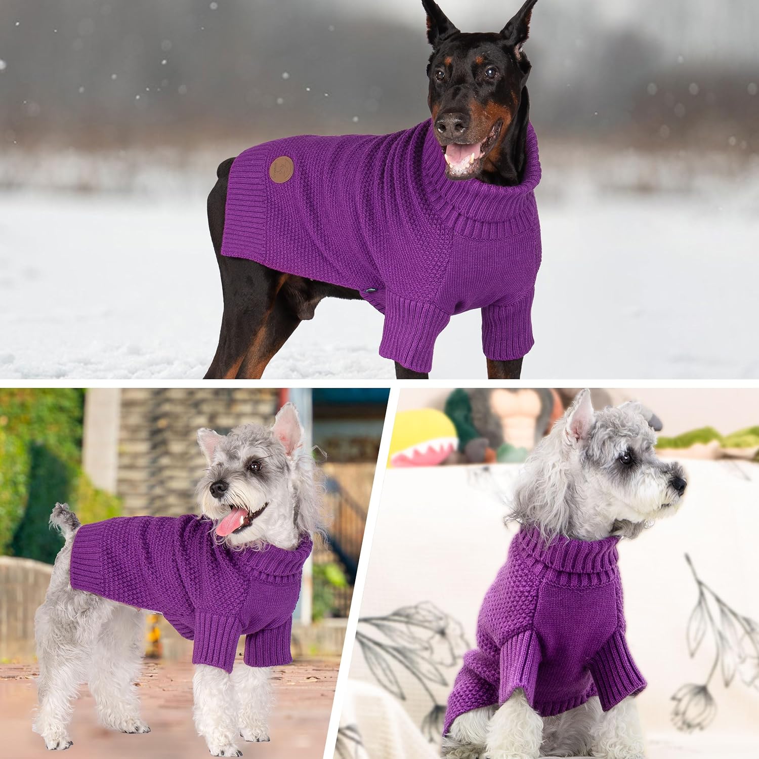 cyeollo Dog Sweater Pullover Turtleneck for Dogs Girl, Classic Knitwear Fall Winter Cold Weather Doggie Clothes Warm Pet Apparel Small Dog Sweaters, Purple S