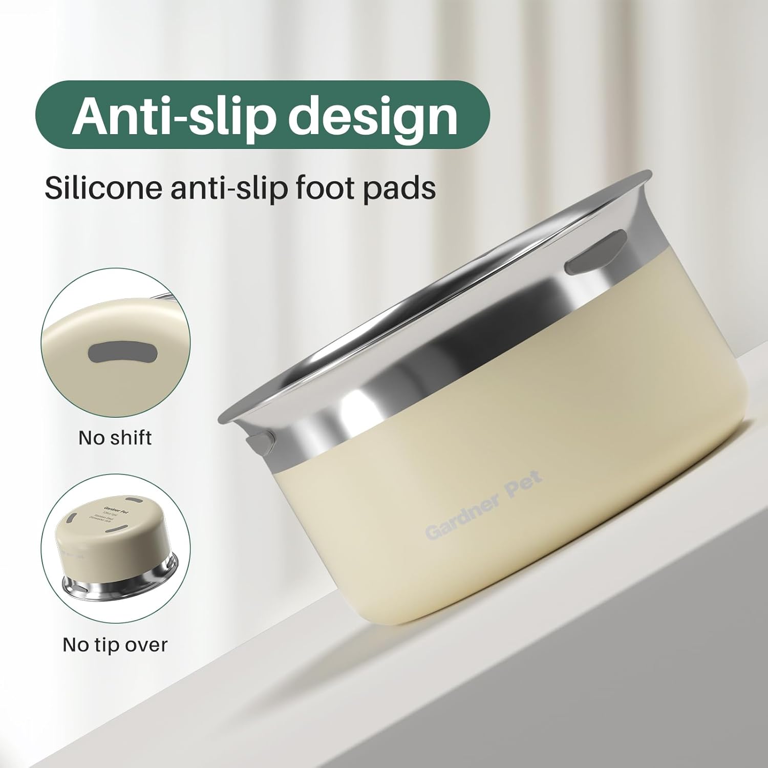 - Anti-Slip Design: Non-slip pads on the base ensure stability, preventing the bowl from tipping over or sliding, no matter how active your pet is.