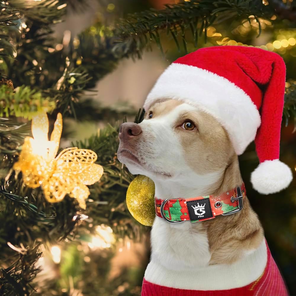 TSPRO Tactical Dog Collar 1.5 Inch Wide Thick Dog Collars with Heavy Duty Metal Buckle, Durable, Strong, Adjustable for Medium to Large Dogs (Christmas Green L)