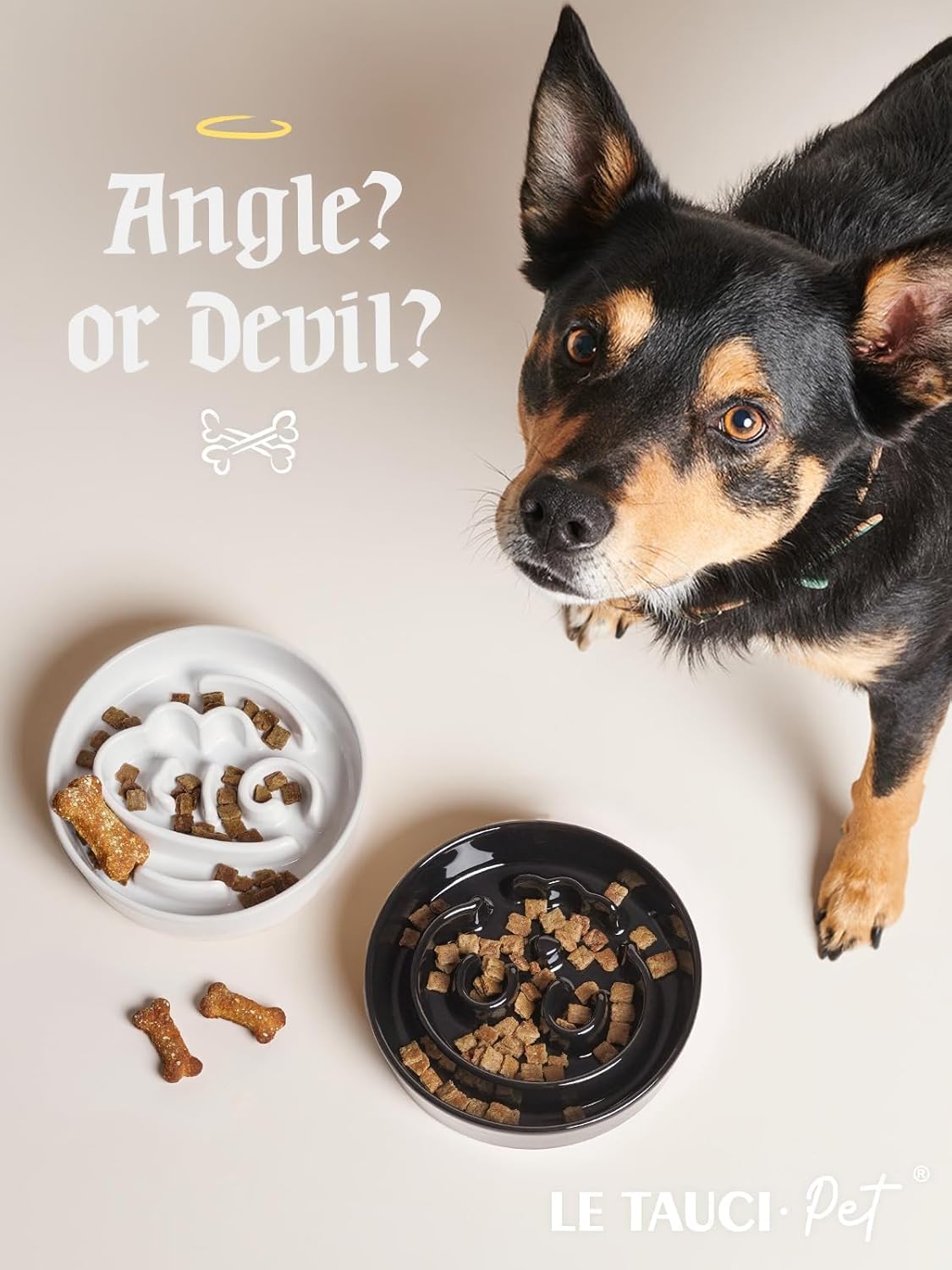 LE TAUCI Ceramic Slow Feeder Dog Bowls Small Breed, 0.6 Cups Elevated Dog Bowl for Fast Eaters, Puzzle Bowl for Small Dogs and Cats,Angle White
