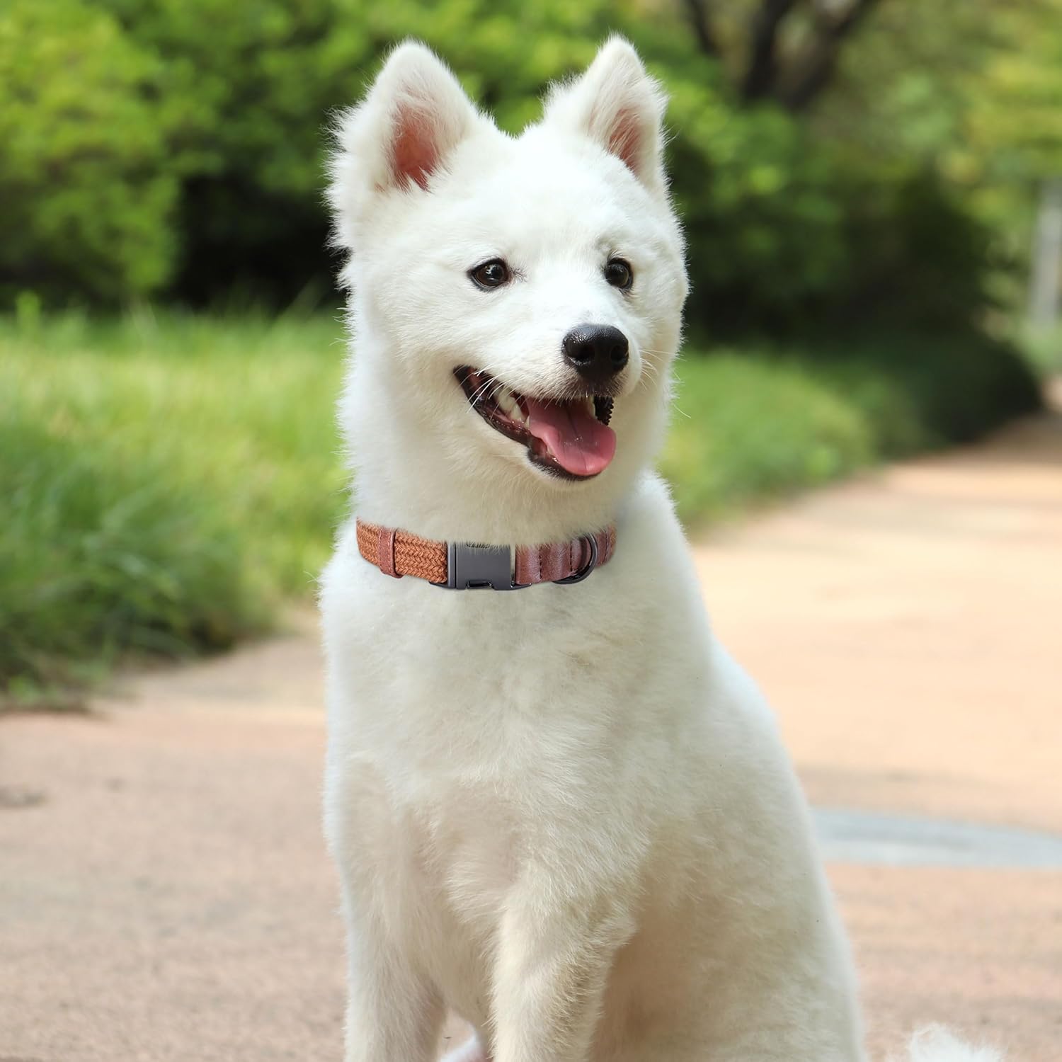 - Elegant & Functional Design: The metal D-ring, with its sleek finish, provides a sturdy attachment point for leashes or ID tags. Meanwhile, the adjustable roll buckle ensures a customized, comfortable fit for your pet. Every aspect of its design combines style and practicality, making it an ideal gift for any pet-related activity