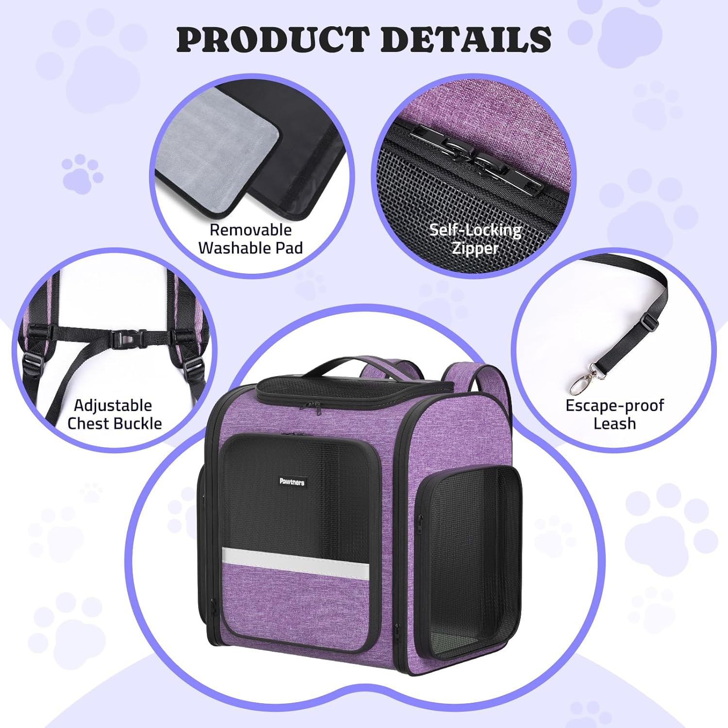 Pawtners Dog Carrier Backpacks Large Cat Backpack with Anti-Scratch Mesh, Foldable Designed Pet Backpack Carrier for Kitten Small Dogs & Large Cats Up to 18 Lbs, Dog Carrier for Travel Outdoor