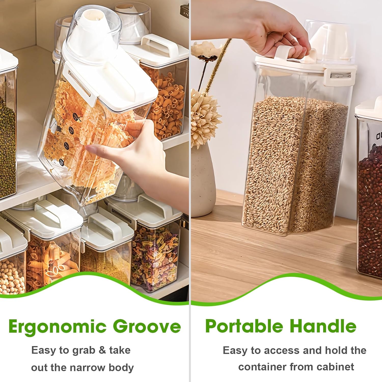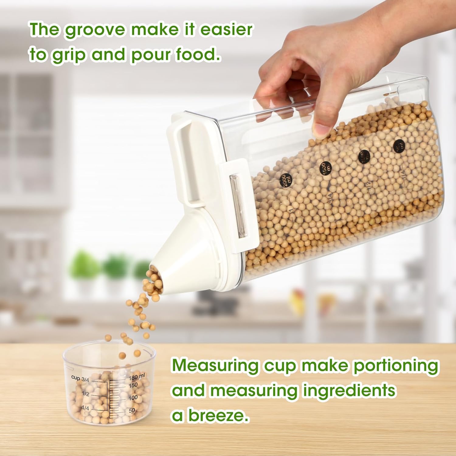 - MESS-FREE FOOD DISPENSER: The cereal storage container features a pouring spout makes it a breeze to dispense your ingredients. Its ergonomic design offers a comfortable grip for easy, single-handed pouring