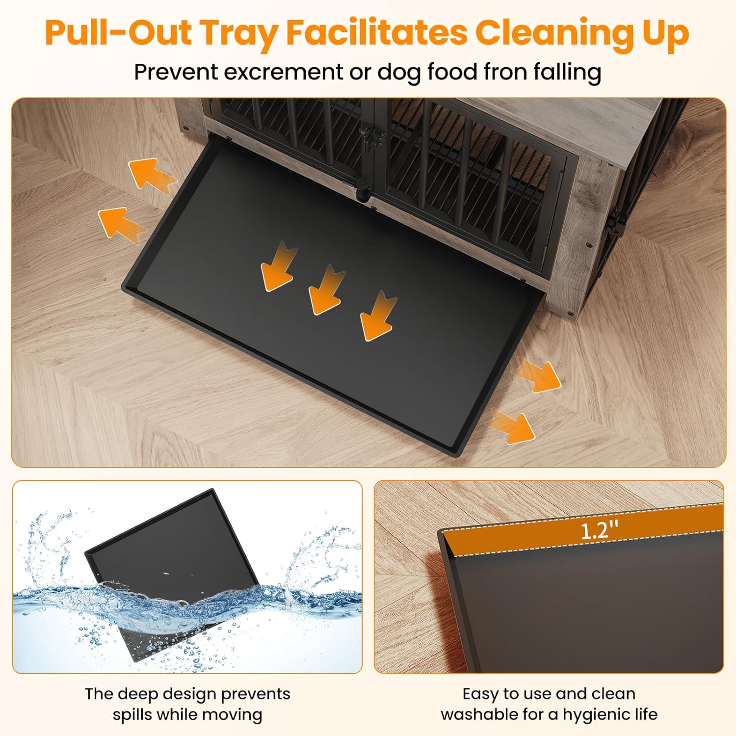 - 【Versatile Tray Usage】Put the tray under the bottom mesh to catch crumbs, fur, and dirt, keeping your dog's place clean without dirtying your floor, maintaining a tidy living space for your pet, or place the tray above the mesh to offer your dog a flat, comfortable surface—it's up to you