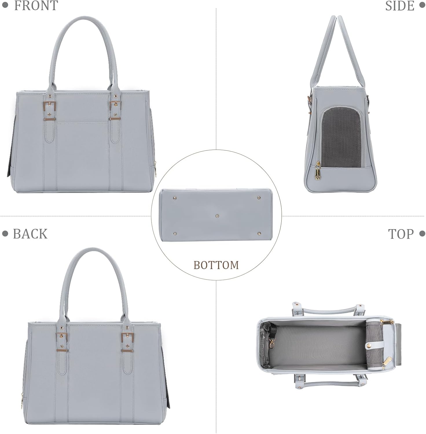 Fashion Pet Carrier Dog Purse Cat Bag Soft-Sided Carriers Travel Airline Approved, Stylish Leather Tote Handbag for Small Animal Puppy Kitten (Grey)