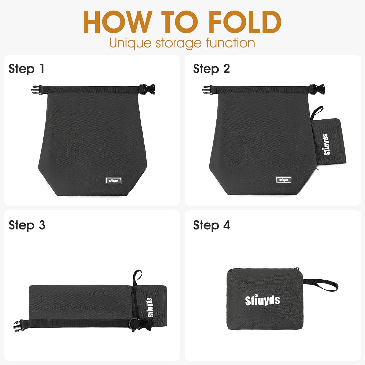 - SECURE ROLL-TOP CLOSURE - The innovative roll-top design allows you to securely close the bag by rolling it down and buckling it in place, providing a tight seal that keeps the contents protected. The strong buckle and attached D-ring offer added convenience, allowing you to clip on accessories such as leashes, keys, or tags, ensuring everything you need is within easy reach