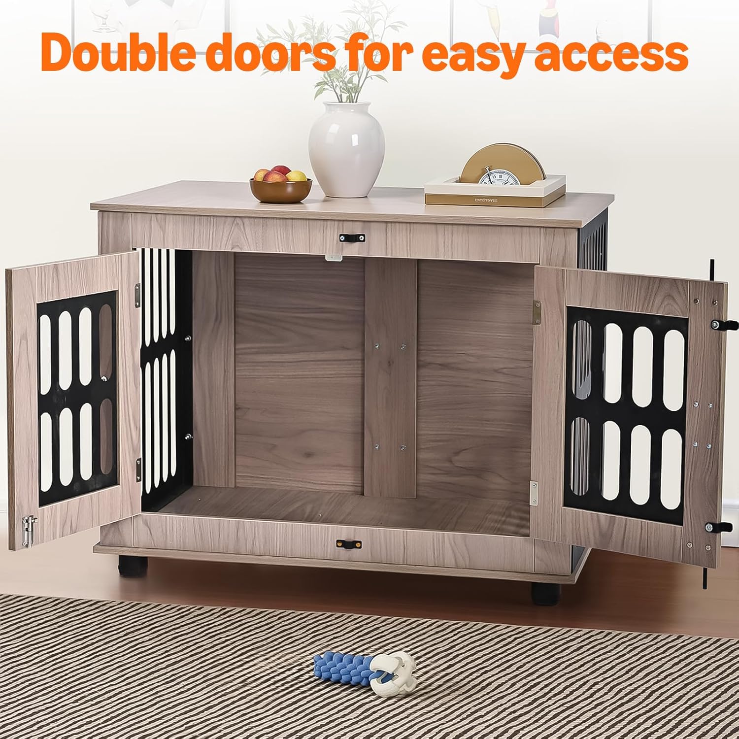 - DURABLE & EASY TO MAINTAIN: Built with high-quality wood and chew-resistant metal, this dog crate furniture is made to last. The smooth surface is easy to clean, ensuring a hygienic space for your pet while maintaining its sleek appearance