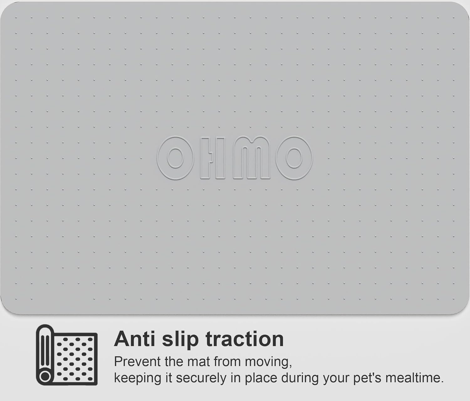 OHMO Dog Food Mat, Silicone Waterproof Cat Food Mat, Non-Skid Spill Proof Pet Feeding Mat for Food and Water, Easy to Clean Dog Placemat(Ash, 18.9" x 11.8")