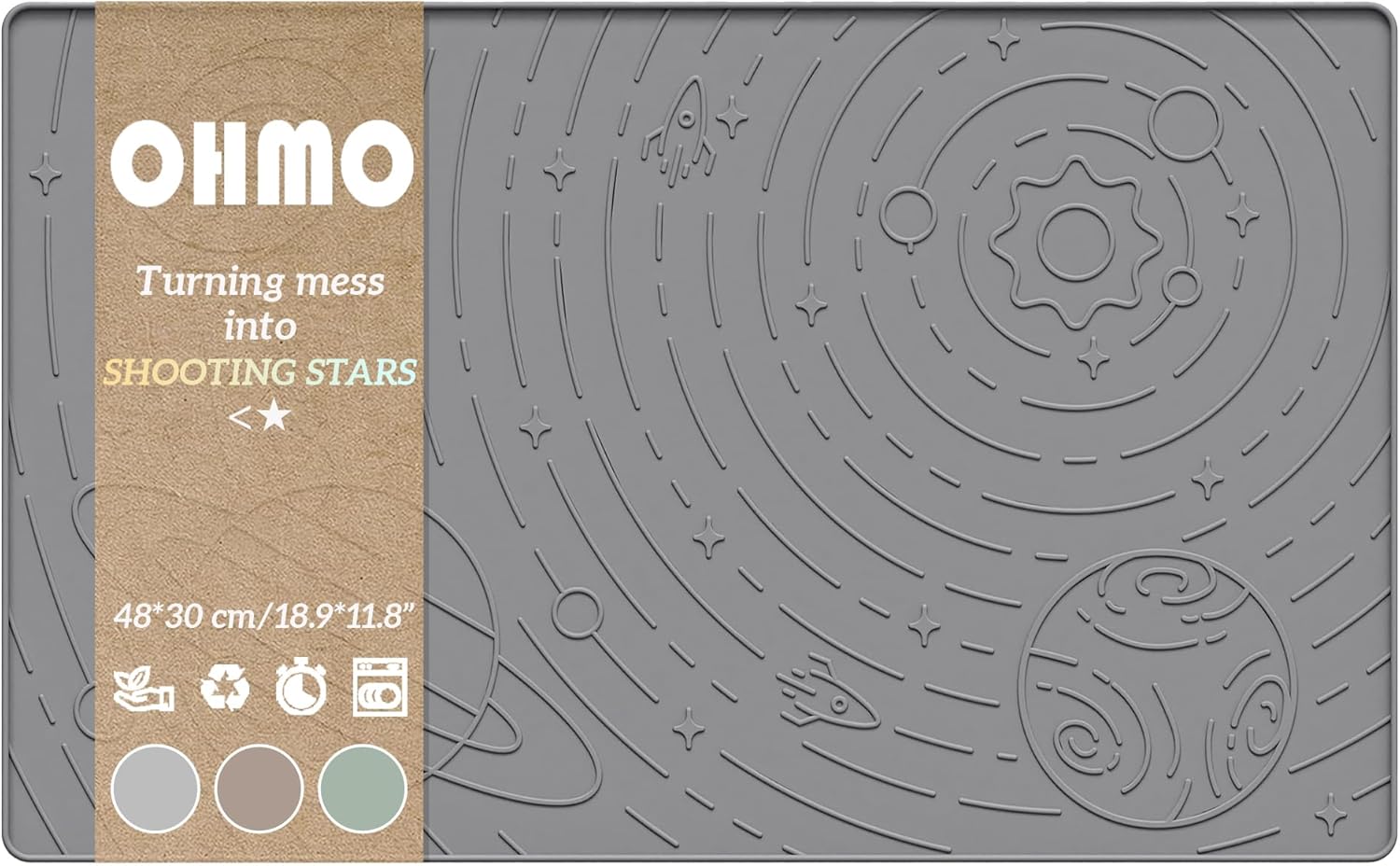 OHMO Dog Food Mat, Silicone Waterproof Cat Food Mat, Non-Skid Spill Proof Pet Feeding Mat for Food and Water, Easy to Clean Dog Placemat(Grey, 18.9" x 11.8")