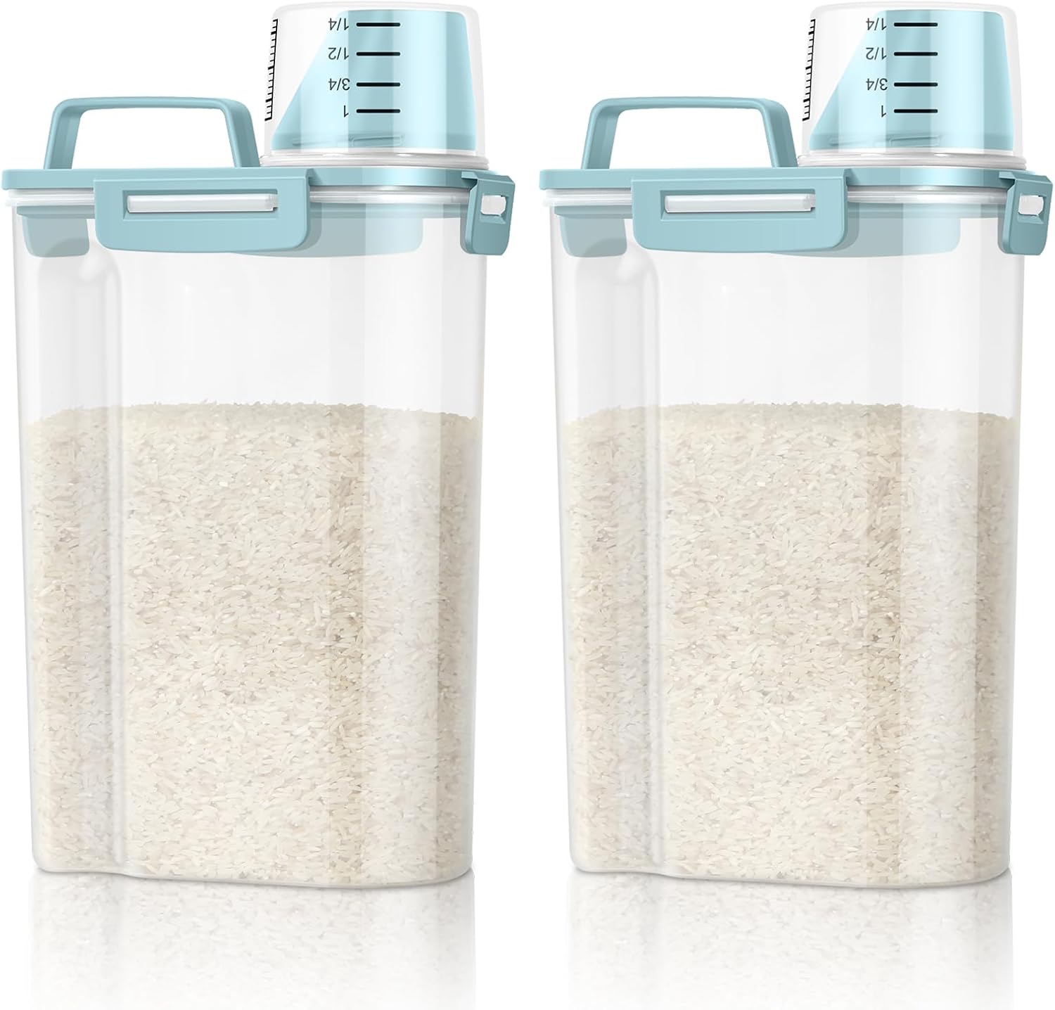 - Seal Tightly: The lid shut tightly with latches and silicone gaskets to seal in freshness. The pout is capped with a integrated measuring cup that make your food measuring easier