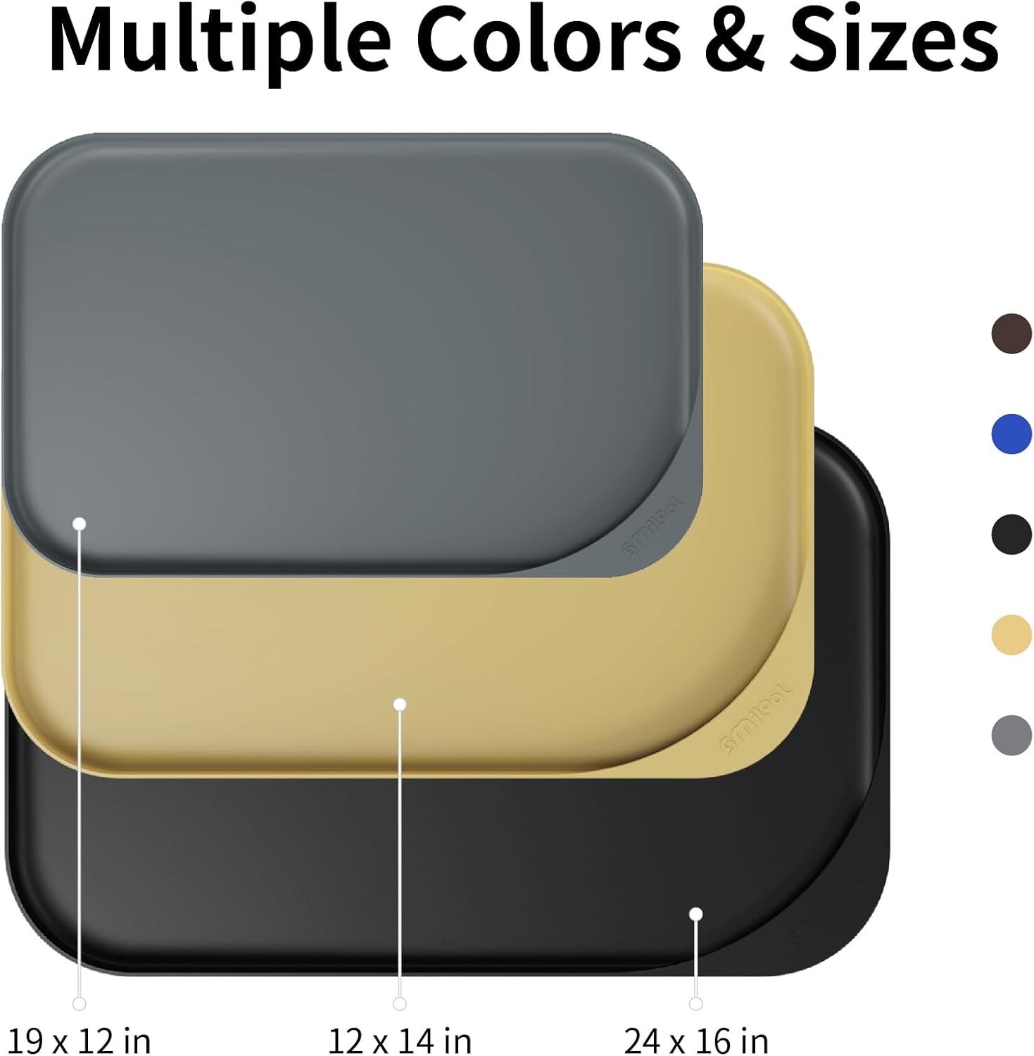 - Pay Attention to Deep Pet Food Mat Size - Our no slip large pet feeding mats round are available in 3 sizes, 19 x 12 x 0.7 inches, 22 x 14 x 0.8 inches and 24 x 16 x 0.8 inches., fitting most small, medium and big rubber mat for dog bowls. Make sure to check if a plastic dog eating mat wide (not hard plastic) fits your pet's bowls and dishes.