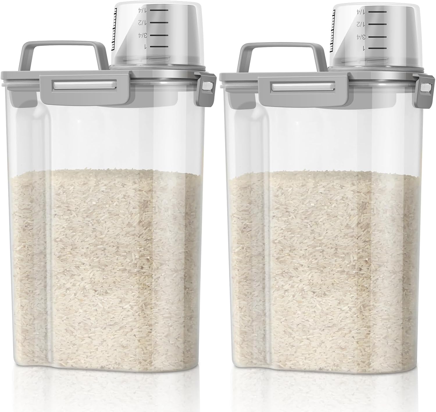 - 2 Pack Versatile Storage Container: The portable rice dispenser will fit your many storage need, from storing dry food to laundry detergent. Each rice container normally can hold 5 lbs of rice or 3 lbs of pet food. Capacity will vary depending on different food