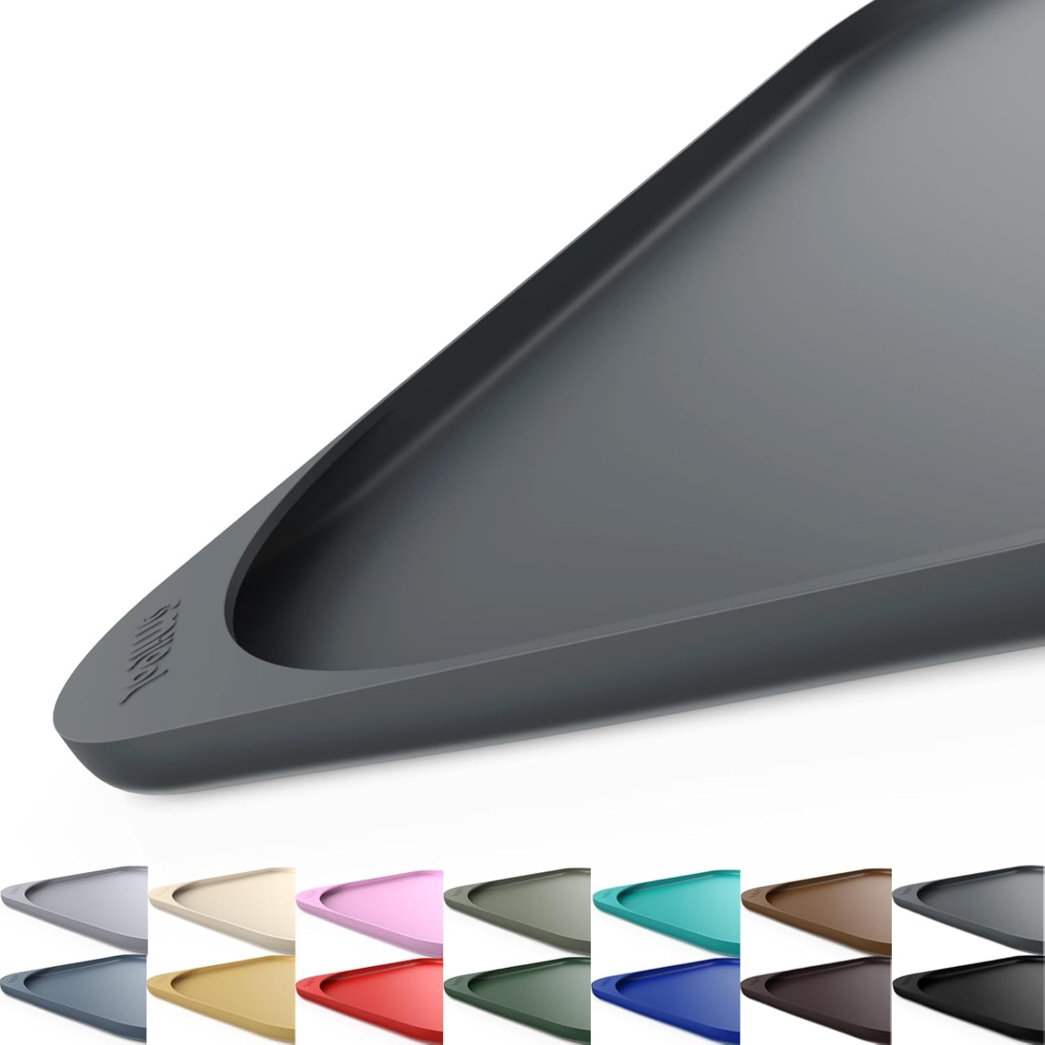 Silicone Pet Feeding Mat with Raised Edge & Residue Collection Pocket for Food and Water, Dog Bowl Mats, Cat Bowls Placemat with High Lip for Floor Waterproof, 24 x 16 x 0.8 Grey