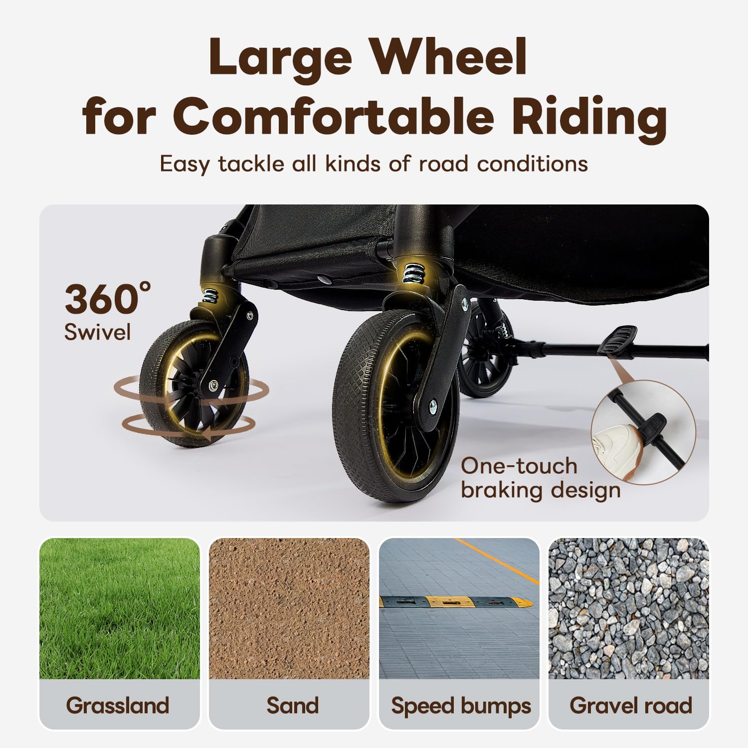 - 【Stable Ride and Reliable Brakes】Equipped with large, shock-absorbing wheels, this dog stroller for small/medium dogs & cats can smoothly traverse any terrain, from bumpy dirt paths to cobblestone streets. The reliable brakes provide added safety and stability.