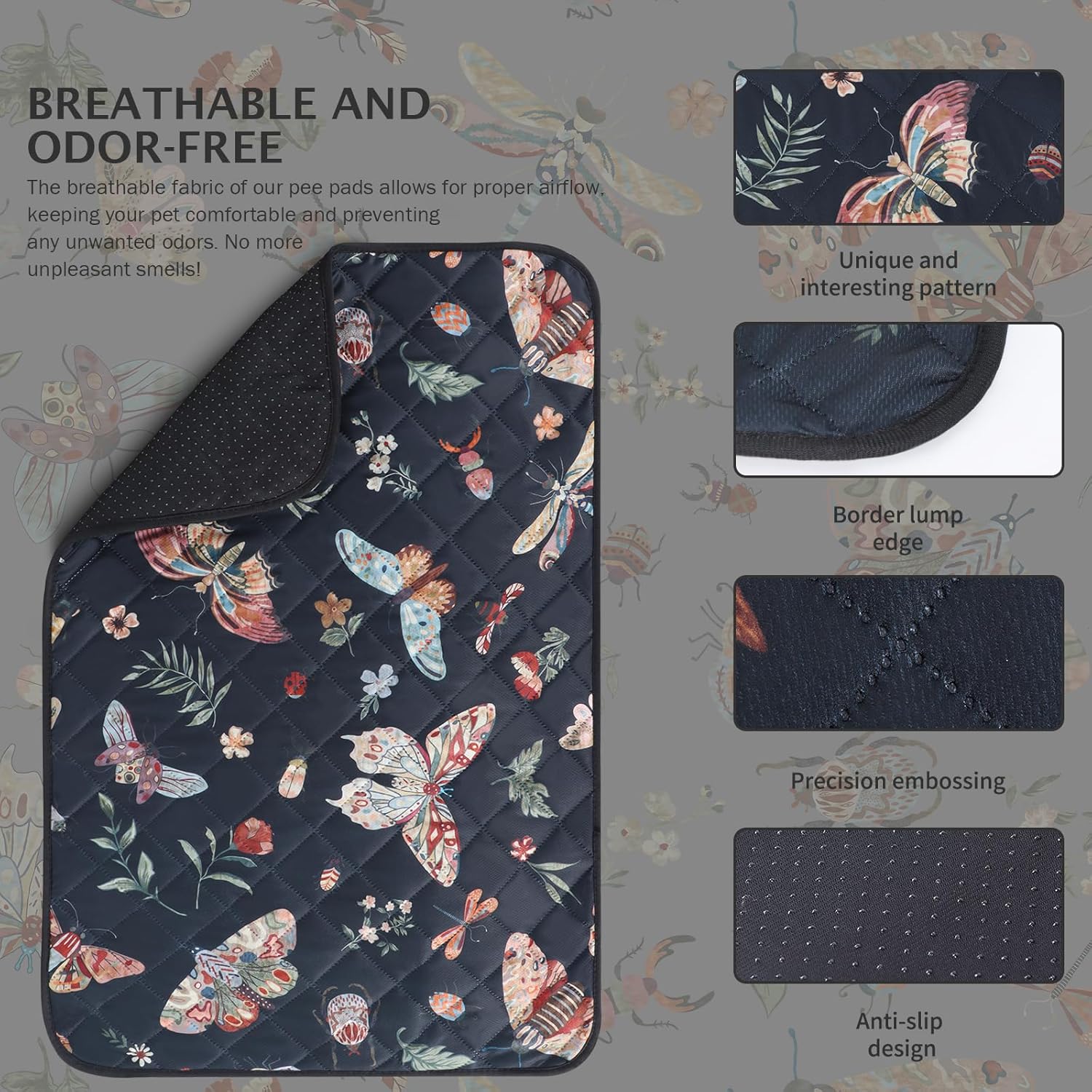 IEUUMLER Washable Pee Pads for Dogs, 2 Pack Insect Pattern Reusable Waterproof Puppy Potty Pads, Non-Slip Absorbent Pet Training Pads for Playpen Crate Bed EU014