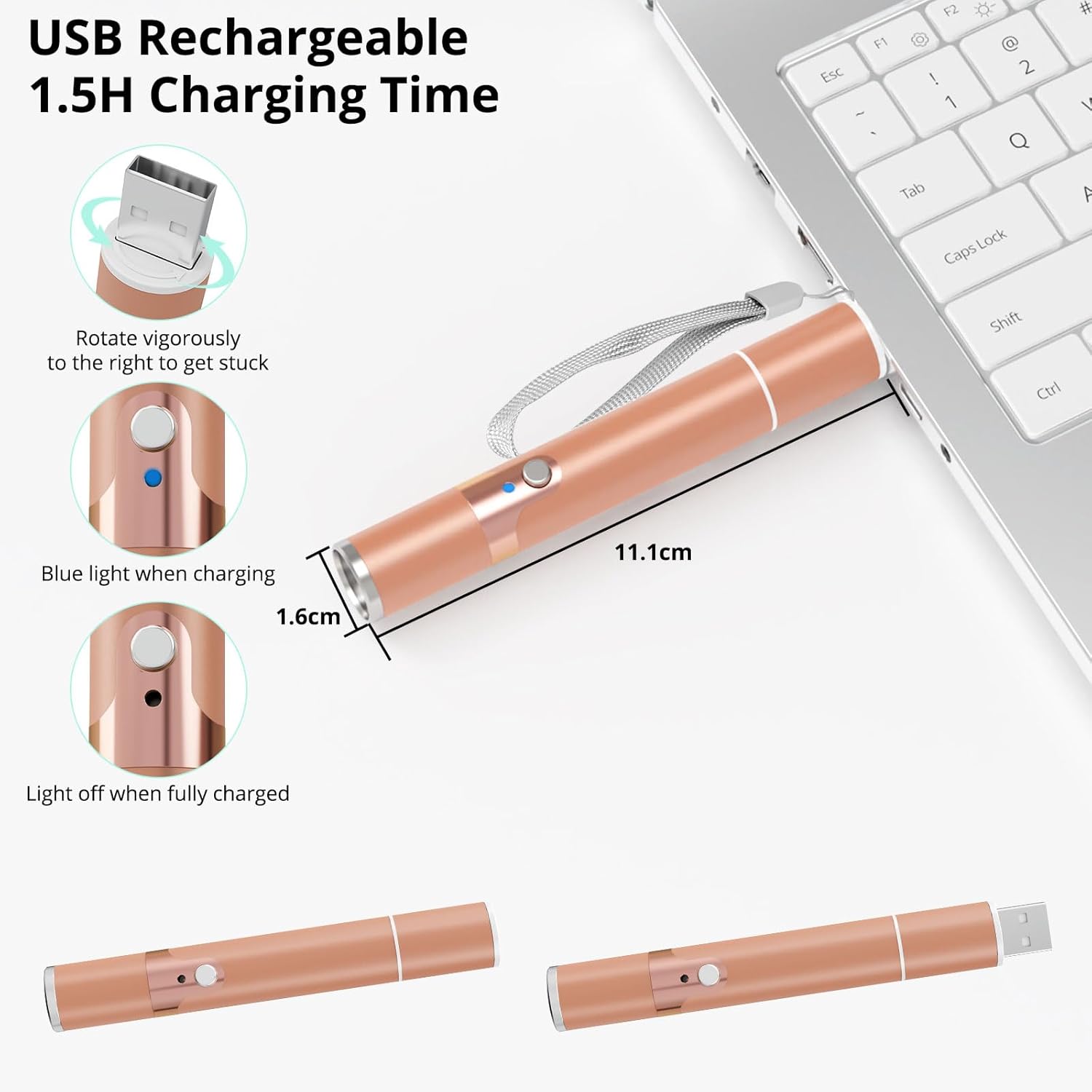 TBTeek Cat Toys for Indoor Cats, 2 Pieces, Rechargeable, 7 Adjustable Patterns, Interactive Kitten Pet Dog Red Dot Chase Light Toy for Cats Fun Playing Exercise(Rose Gold)