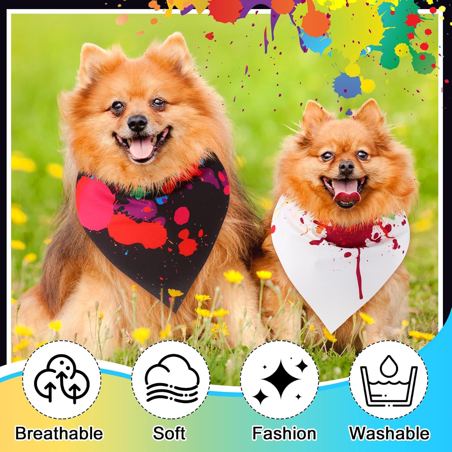 - Ample Quantity: with 72 pieces of ink splash theme dog bandanas in one package, you can have your dog looking stylish, the holiday pet headscarves come in different patterns, bright colors, sufficient quantities, diverse styles, can meet your pet's different style wearing needs and daily replacement