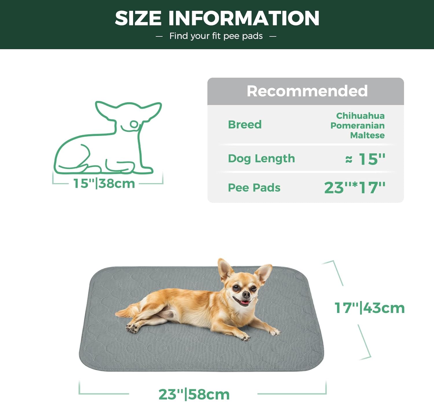 FXW Washable Pee Pads for Dogs, Puppy Pads with Super Absorbent, Specifically Designed for 24inch Cages, 23" × 17" Rectangle, Gray, 4 Packs