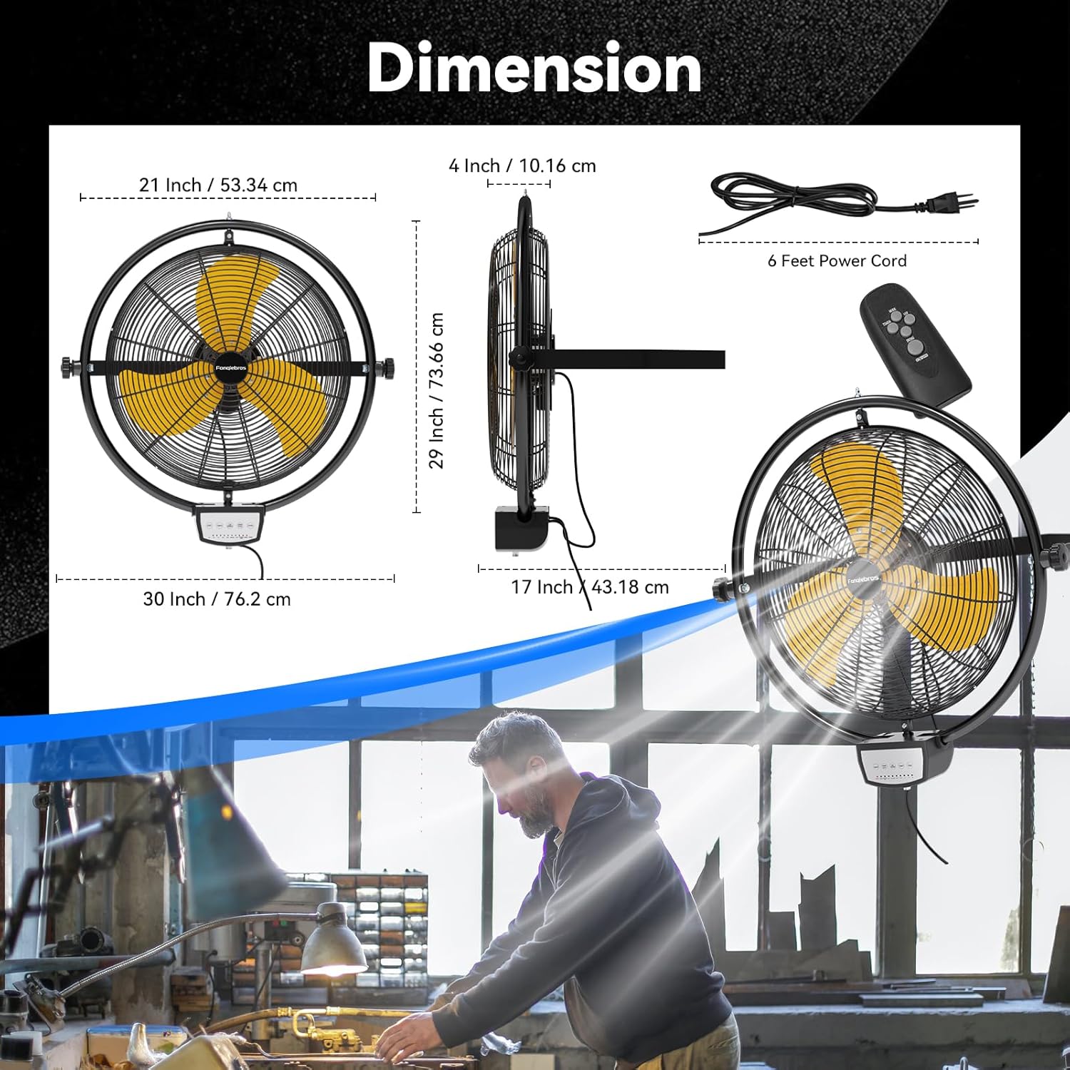 - ๐๐ข๐ ๐ก ๐๐๐ฅ๐จ๐๐ข๐ญ๐ฒ ๐๐ข๐ซ ๐ ๐ฅ๐จ๐ฐ - The heavy duty wall fan design makes the operation more intuitive and simple, and the high, medium and low speeds can be adjusted by the remote control to meet different needs. High speed 5500 CFM, medium speed 4000 CFM, low speed 3800 CFM, providing hurricane-like airflow to meet your garages, shops or outdoor use๏ผNote: used on a covered patios or porch, BUT NOT EXPOSED TO RAIN๏ผ