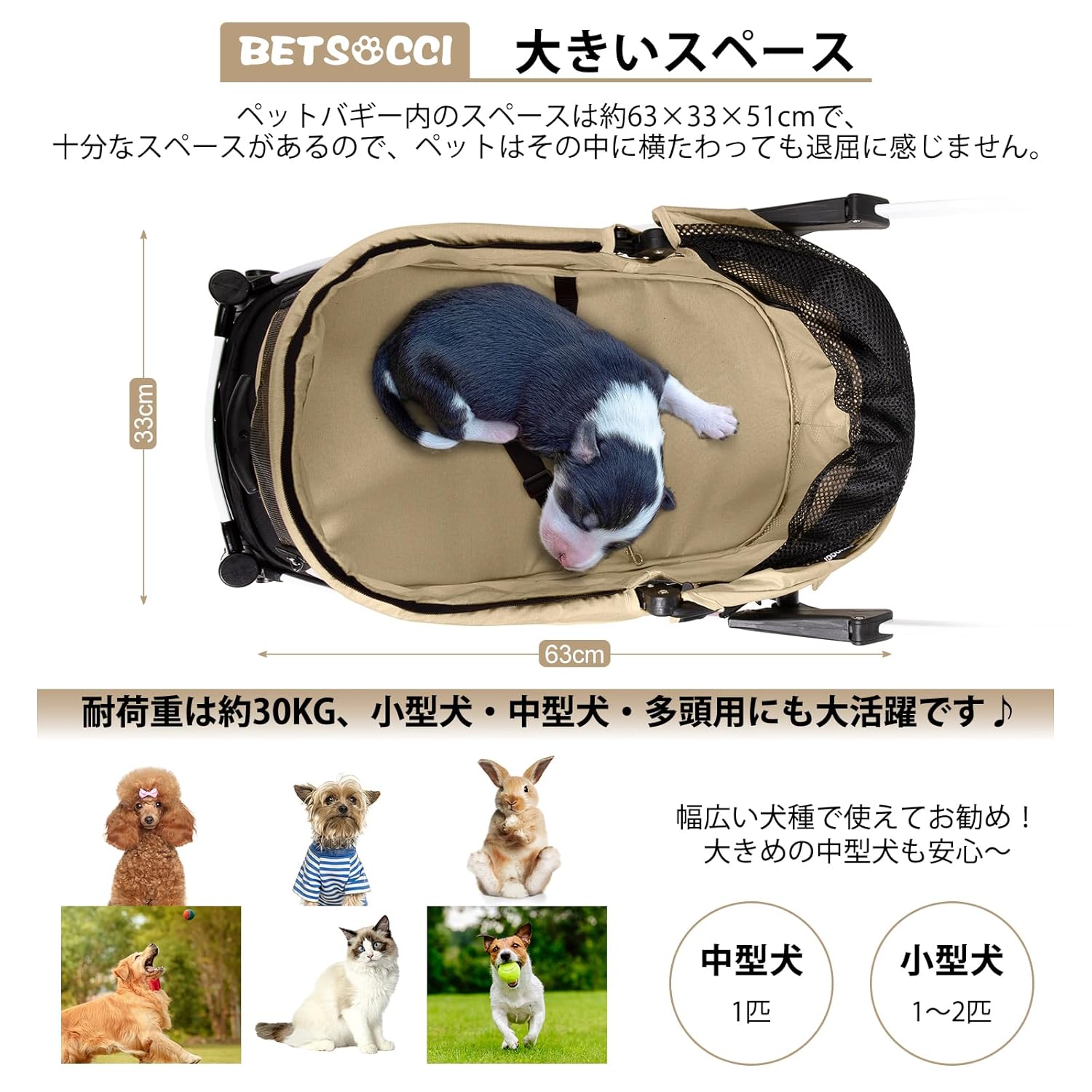 Pet Stroller for Medium Small Dog & Cat, Foldable Lightweight Dog Stroller with Storage Basket Pet Travel Carriage with Safety Leashes, 4 Wheel, Khaki