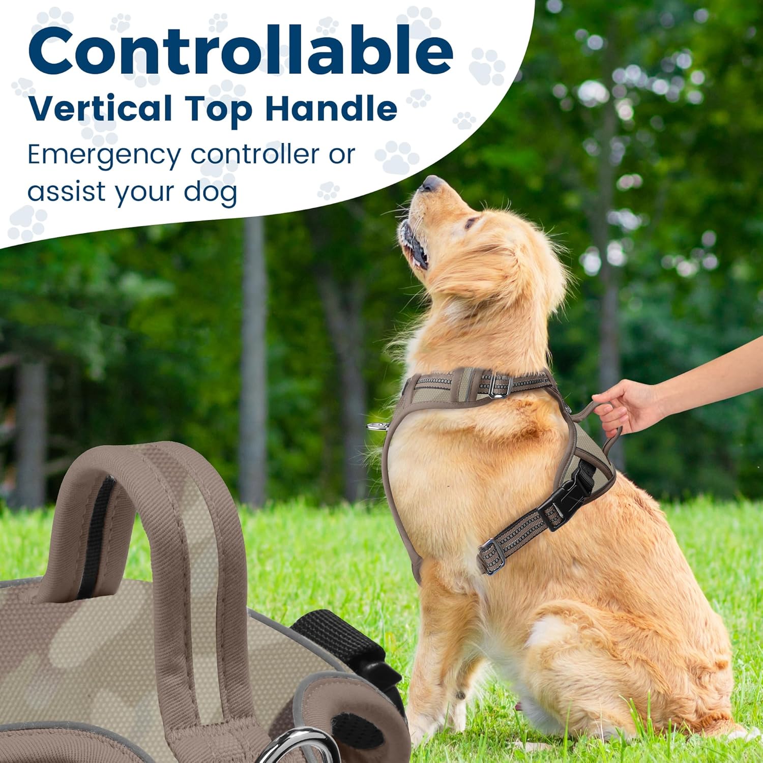 - EASY TO USE: With 2 quick-release buckles are easy to use. Also, this harness features 4 easy Adjusting Straps around the body that allows full adjustment which creates a Perfect Fit for your dog. Vertical Top Handle on back for convenient grabbing.