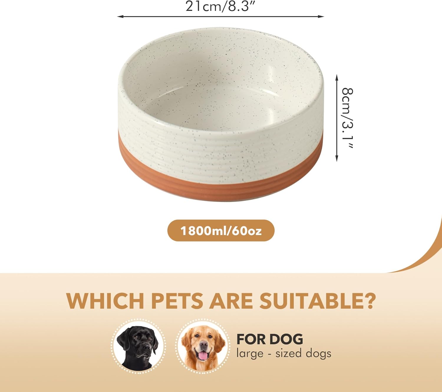 Ceramic 8.2inch Dog Bowl for Large Breed Dogs, Anti-Slip and Weighted Pet Food and Water Dishes(Single Bowl, Vanilla White)