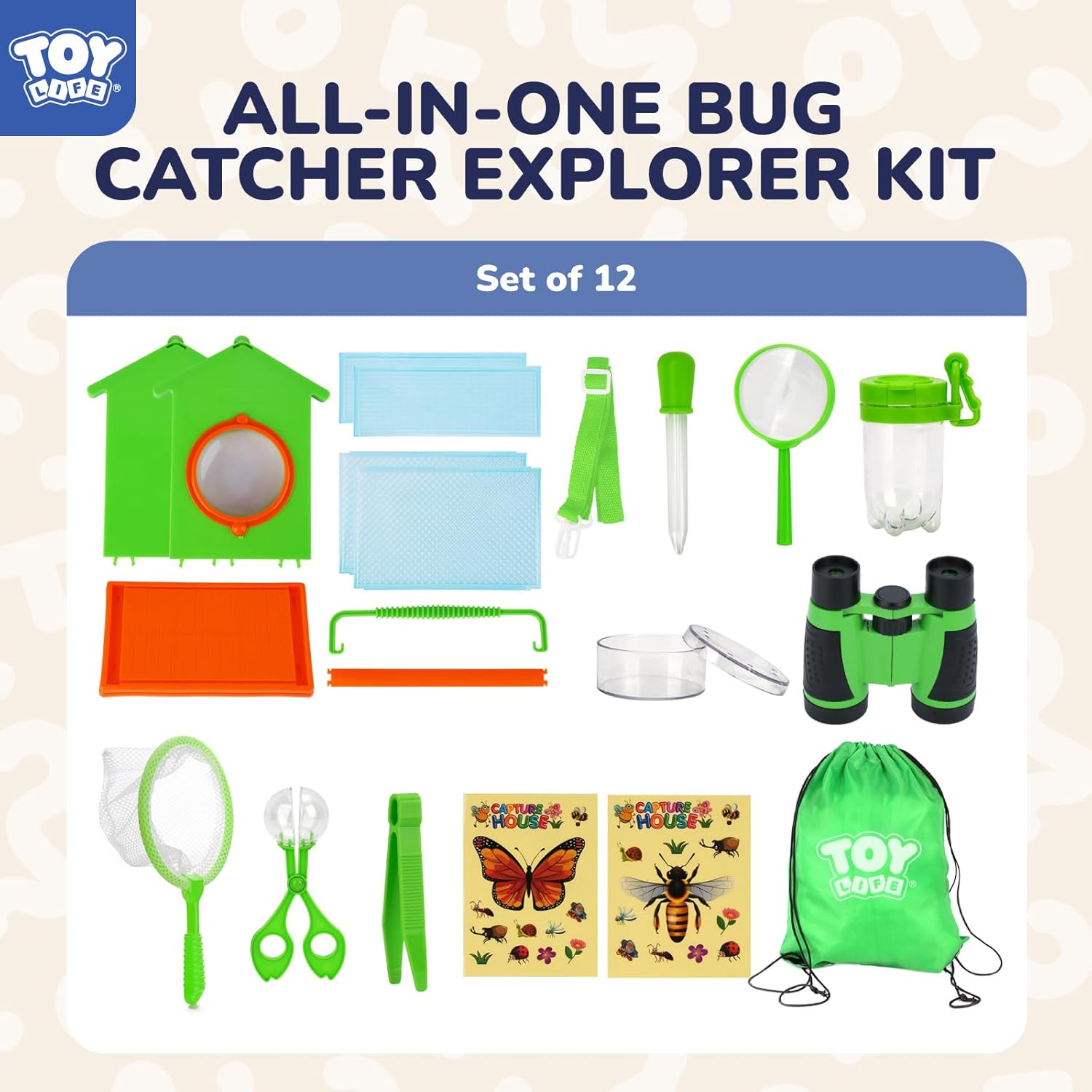 TOY Life Bug Catcher for Kids, Bug Catching Kit Kids Explorer Kit with Bug Net, Catching Tool, Tweezers, Magnifying Glass, Binoculars, Insect Catcher, Educational Outdoor Toys Kid Adventure Set