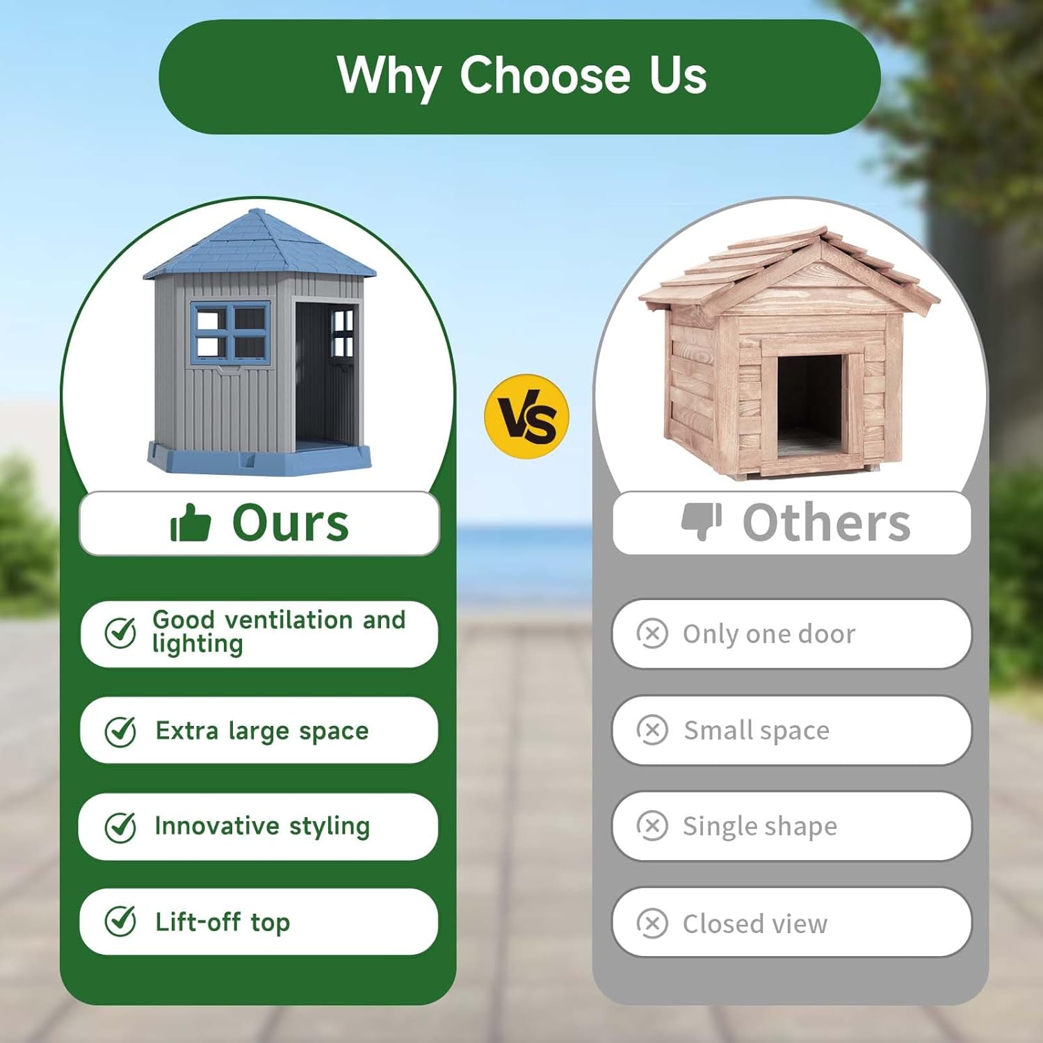 - Ventilated and Breathable: The dog house is equipped with windows that can be opened. These windows allow fresh air to circulate freely inside the dog house, providing your dog with a well-ventilated, comfortable space even on hot days.